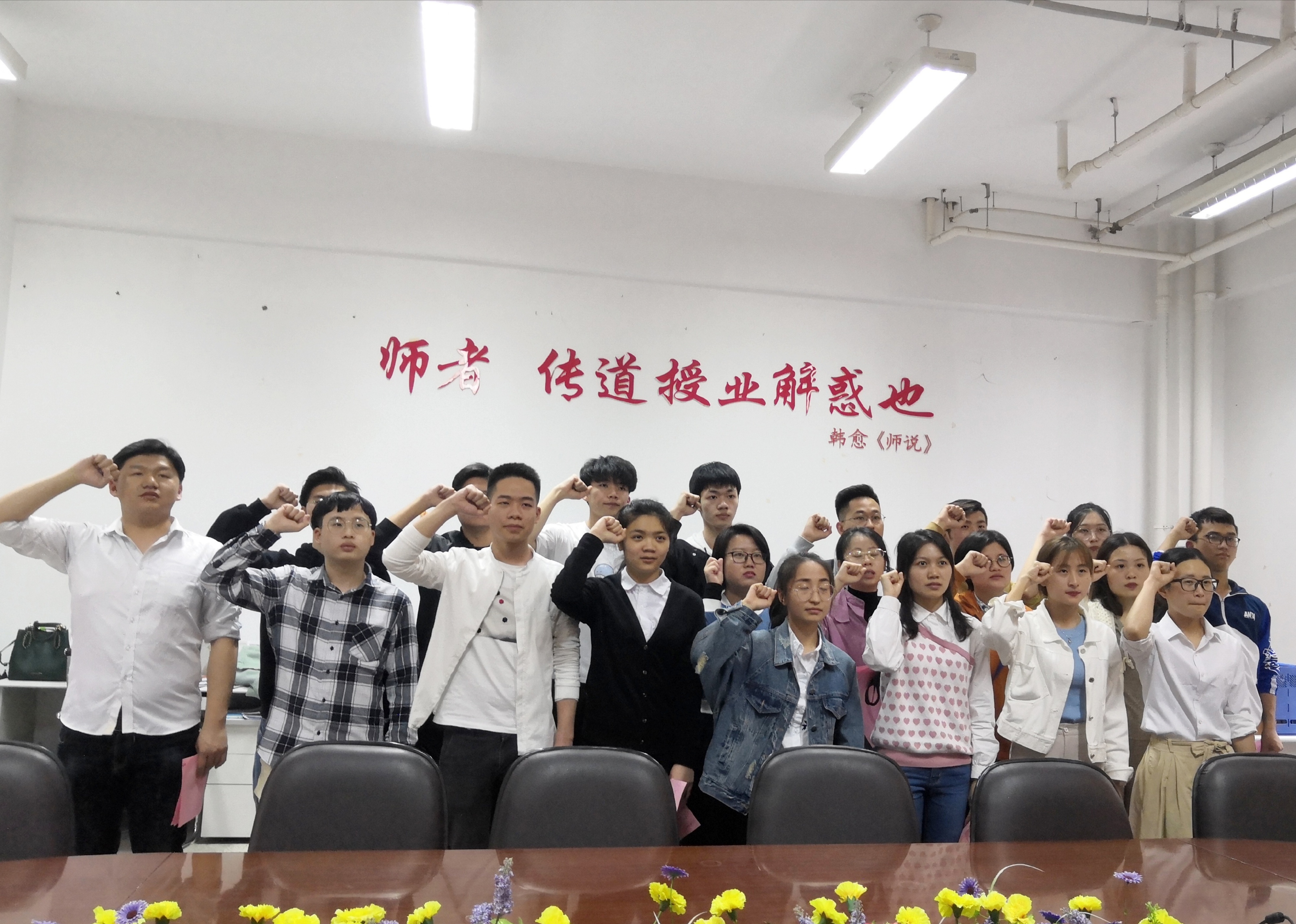 儀式在莊嚴(yán)的《國際歌》中拉開帷幕,主持人宣讀了新黨員名單并帶領(lǐng)新黨員進行入黨宣誓,同老黨員們重溫了入黨誓詞。接著新黨員闕林水同學(xué)代表發(fā)言,表示在日后的學(xué)習(xí)及工作中會再接再厲,虛心學(xué)習(xí),積極起到先鋒模范作用。隨后老黨員代表高長花老師分享了自己十年前入黨時的感受,希望大家在未來的時間里不忘初心、牢記使命,做一名優(yōu)秀的黨員。