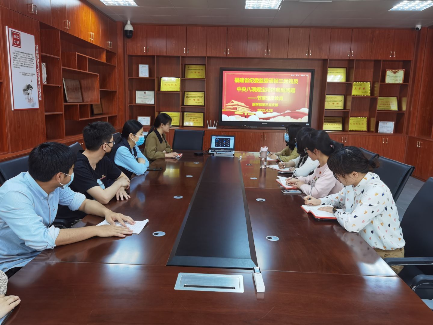 五一勞動節(jié)將至,為深入貫徹落實(shí)中央八項(xiàng)規(guī)定精神,進(jìn)一步嚴(yán)明節(jié)日期間紀(jì)律要求,樹立風(fēng)清氣正的良好環(huán)境,2022年4月29日,醫(yī)學(xué)院第三黨支部開展節(jié)前警示教育,本次主題黨日由支部紀(jì)檢委員兼組織委員林丹丹主持,支部黨員參加活動。