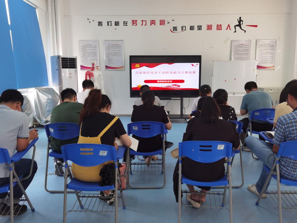 為深入學(xué)習(xí)習(xí)近平總書(shū)記關(guān)于高校黨的建設(shè)重要論述,進(jìn)一步學(xué)習(xí)貫徹落實(shí)《中國(guó)共產(chǎn)黨普通高等學(xué)校基層組織工作條例》,持續(xù)提升基層黨務(wù)工作者黨建工作水平和業(yè)務(wù)技能,9月29日,醫(yī)學(xué)院黨總支在實(shí)訓(xùn)樓401舉辦首屆基層黨務(wù)干部職業(yè)能力大賽初賽。全院五個(gè)黨支部書(shū)記、副書(shū)記、支委、專(zhuān)職組織員參加了比賽。