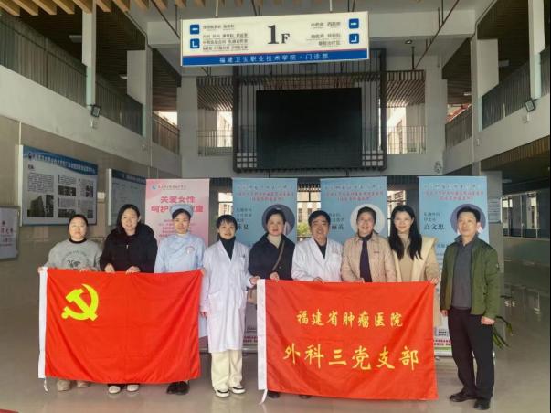 為慶祝第114個“三八”國際勞動婦女節(jié),3月7日下午,醫(yī)學(xué)院教師第一黨支部與福建省腫瘤醫(yī)院外科第三黨支部共同在學(xué)校門診部組織開展“關(guān)愛女性 健康有我”“三八”國際勞動婦女節(jié)主題黨日活動,期間進行了乳腺疾病義診和乳腺健康宣講活動。