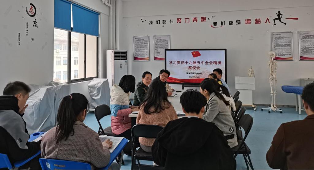 黨的十九屆五中全會是我國改革發(fā)展歷史上的一次重要會議,為進一步學(xué)習貫徹全會精神,加強支部黨員理論水平及黨性修養(yǎng),2020年12月22日中午,醫(yī)學(xué)系第三黨支部陳銘書記為支部黨員及入黨積極分子講授《開啟全面建設(shè)社會主義現(xiàn)代化國家新征程》的專題黨課。
