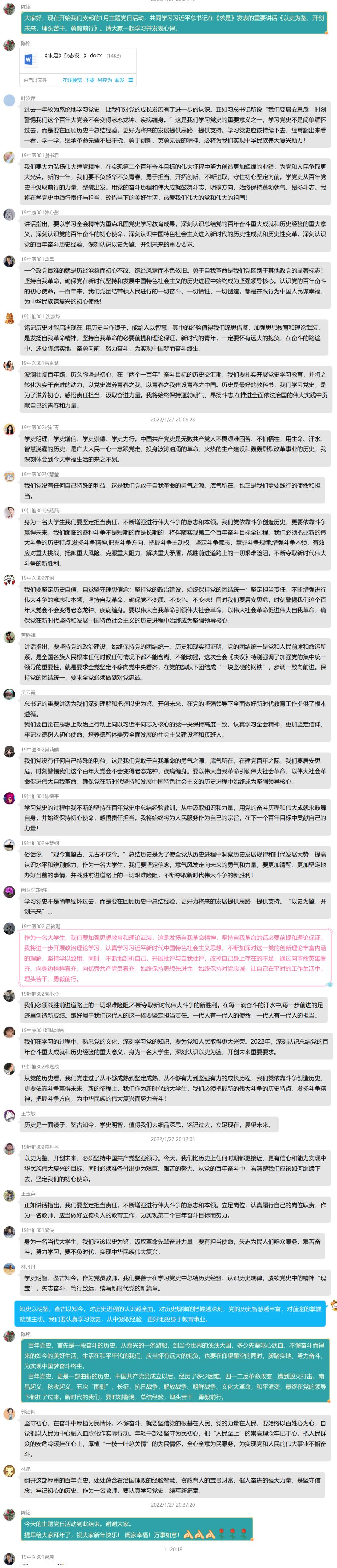 通過(guò)學(xué)習(xí),支部全體黨員對(duì)此次講話(huà)精神有了更深入地了解,紛紛發(fā)表自己的看法。葉汝萍表示,過(guò)去一年較為系統(tǒng)地學(xué)習(xí)黨史,讓我們對(duì)黨的成長(zhǎng)發(fā)展有了進(jìn)一步的認(rèn)識(shí)。正如習(xí)近平總書(shū)記所說(shuō)“我們要居安思危,時(shí)刻警惕我們這個(gè)百年大黨會(huì)不會(huì)變得老態(tài)龍鐘、疾病纏身?!边@是我們學(xué)習(xí)黨史的重要意義之一。學(xué)習(xí)黨史不是簡(jiǎn)單緬懷過(guò)去,而是要在回顧歷史中總結(jié)經(jīng)驗(yàn),更好為將來(lái)的發(fā)展提供思路,提供支持。學(xué)習(xí)黨史應(yīng)該持續(xù)下去,經(jīng)常翻出來(lái)看一看,學(xué)一學(xué)。繼承革命先輩不屈不撓、勇于創(chuàng)新、英勇無(wú)畏的精神,必將為我們實(shí)現(xiàn)中華民族偉大復(fù)興助力!吳云霞表示,習(xí)近平總書(shū)記的重要講話(huà)為我們深刻理解和把握以史為鑒、開(kāi)創(chuàng)未來(lái),在黨的堅(jiān)強(qiáng)領(lǐng)導(dǎo)下全面做好新時(shí)代教育工作提供了根本遵循。我們要自覺(jué)在思想上政治上行動(dòng)上同以習(xí)近平同志為核心的黨中央保持高度一致,認(rèn)真學(xué)習(xí)全會(huì)精神,更加堅(jiān)定信仰、牢記立德樹(shù)人初心使命,培養(yǎng)德智體美勞全面發(fā)展的社會(huì)主義建設(shè)者和接班人。林丹丹表示,學(xué)史明理、鑒古知今。作為黨員教師,我們要善于在學(xué)習(xí)黨史中總結(jié)歷史經(jīng)驗(yàn)、認(rèn)識(shí)歷史規(guī)律,賡續(xù)黨史中的精神“瑰寶”,矢志奮斗,篤行致遠(yuǎn),續(xù)寫(xiě)新時(shí)代黨的新篇章。