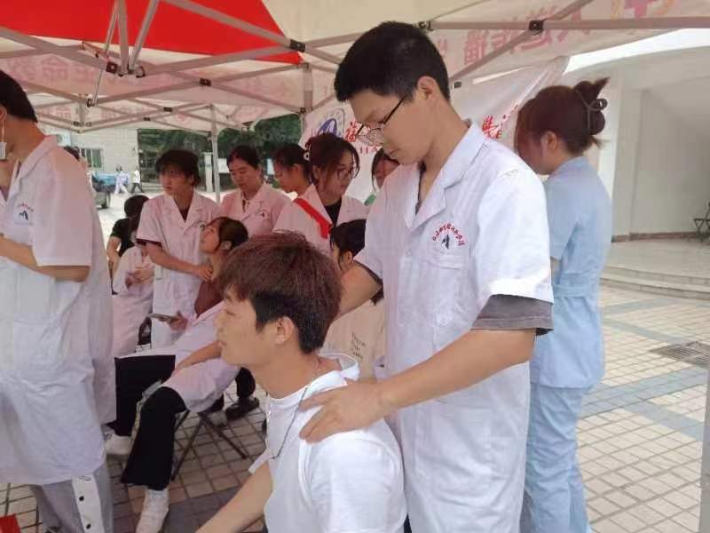 賽后,黨員教師聯(lián)合康健俱樂部成員為運動員開展康復(fù)治療。
