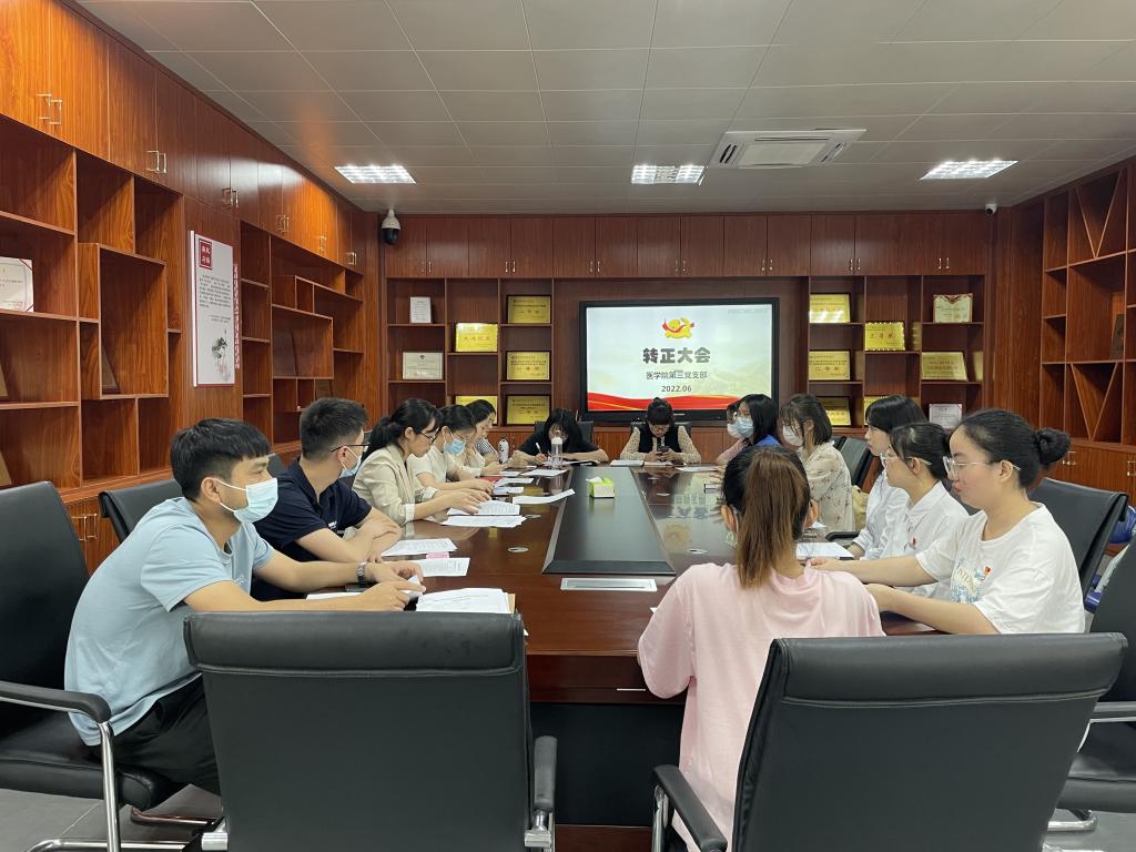 2022年6月14日中午,醫(yī)學(xué)院第三黨支部在實(shí)訓(xùn)樓311召開預(yù)備黨員轉(zhuǎn)正大會(huì)。會(huì)議由支部副書記葉汝萍主持,支部11名正式黨員全部參會(huì)。