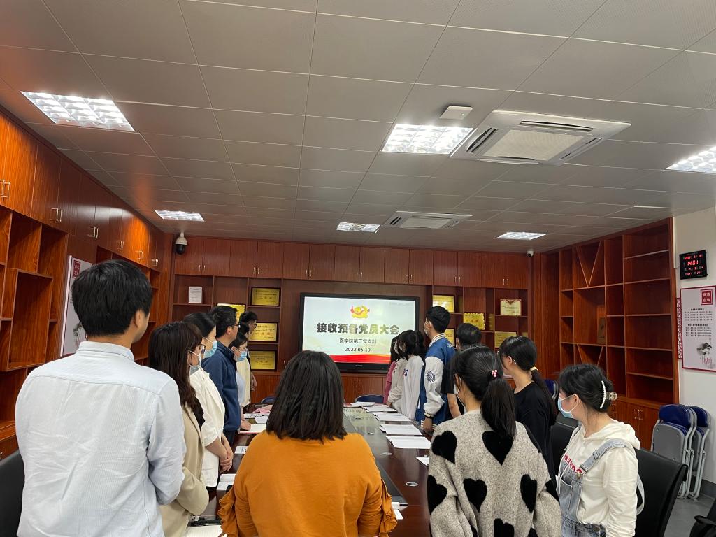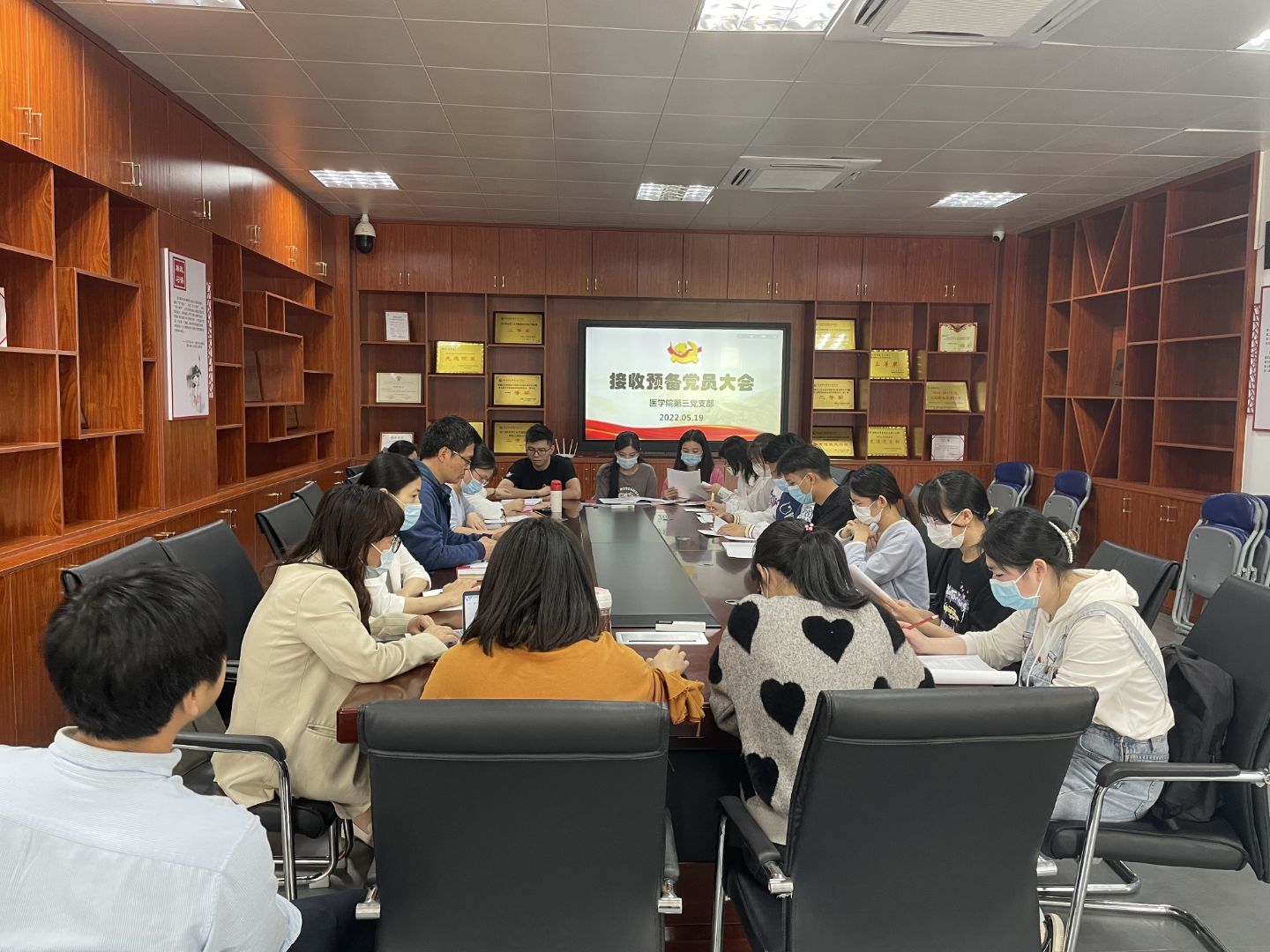 為進(jìn)一步壯大黨員隊(duì)伍,凝聚組織力量,培養(yǎng)優(yōu)秀黨員,2022年5月19日下午,醫(yī)學(xué)院第三黨支部在實(shí)訓(xùn)樓311室召開(kāi)接收預(yù)備黨員大會(huì)。會(huì)議由支部書(shū)記陳銘主持,支部11名正式黨員全部參會(huì)。