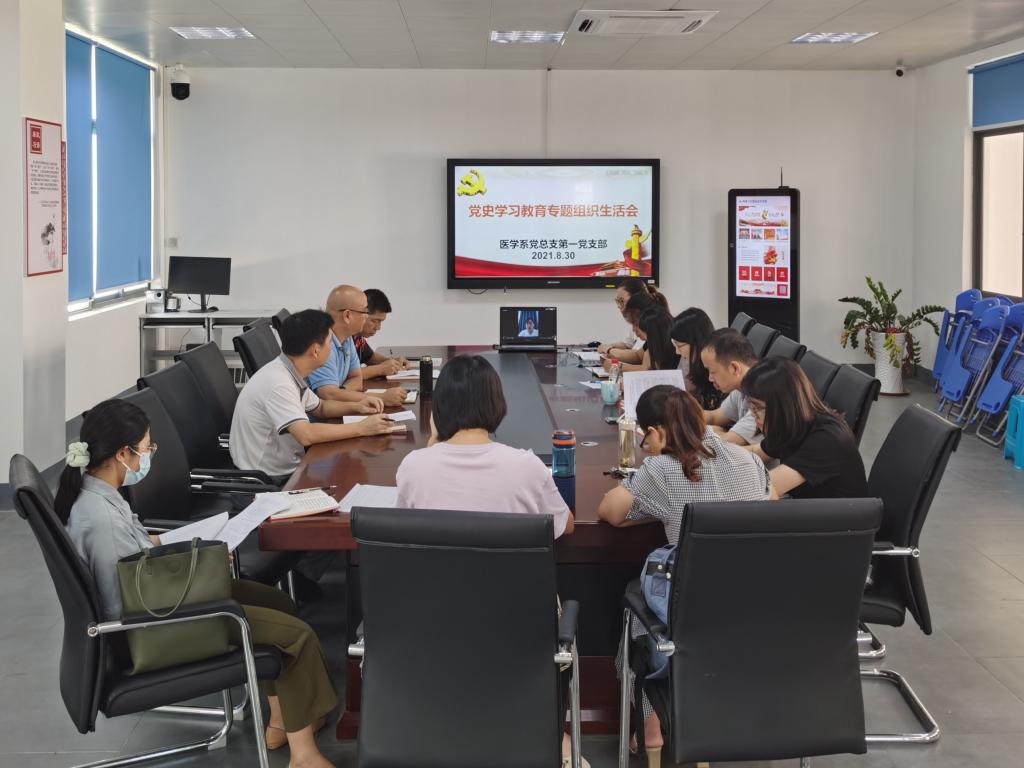 按照學(xué)校黨委和系黨總支的工作部署要求,醫(yī)學(xué)系黨總支第一黨支部于8月30日召開(kāi)黨史學(xué)習(xí)教育組織生活會(huì)。醫(yī)學(xué)系黨總支書(shū)記邱滾忠列席,會(huì)議由黨支部書(shū)記朱翔主持。