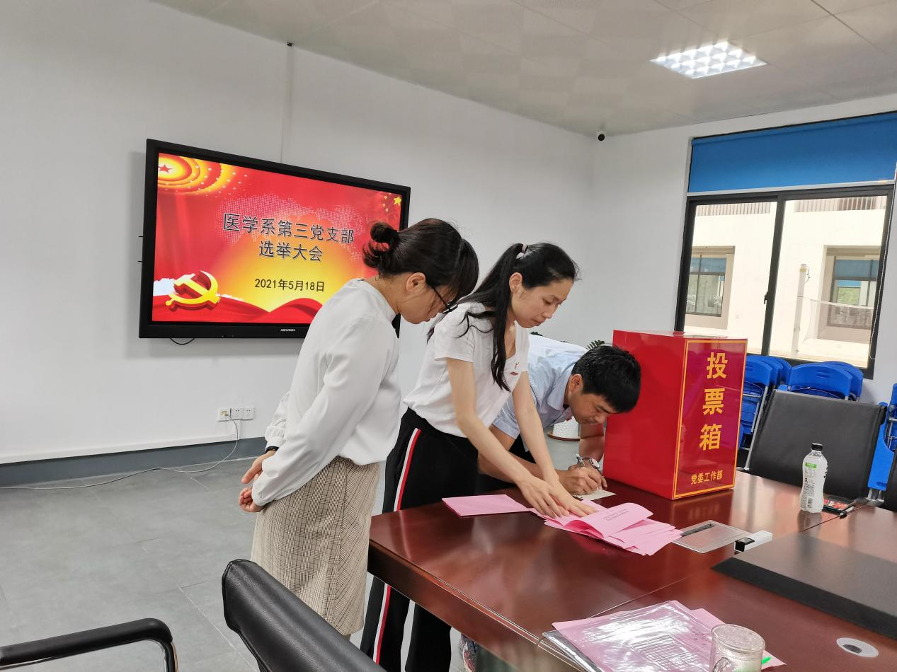 5月18日,醫(yī)學系第三黨支部換屆選舉大會在實訓(xùn)樓311召開。第三黨支部全體黨員參加了本次大會,會議由支部書記陳銘主持。