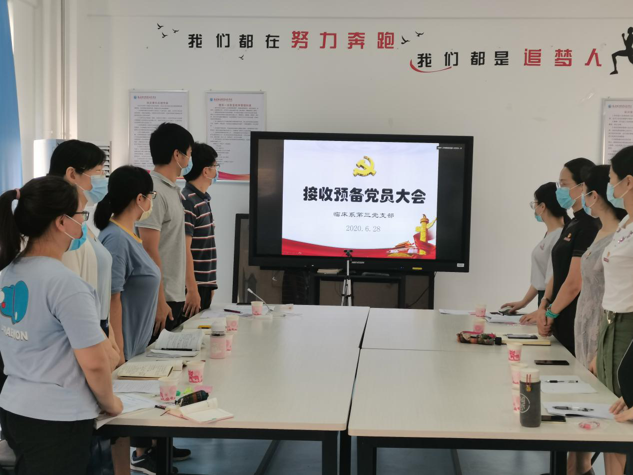 2020年6月28日下午,臨床醫(yī)學(xué)系第三黨支部采用線上結(jié)合線下的方式召開接收預(yù)備黨員大會(huì)。本次會(huì)議是嚴(yán)格按照黨章和發(fā)展黨員的規(guī)定,按組織程序,經(jīng)上級(jí)黨委批準(zhǔn),召開關(guān)于討論接收吳金文、方英豪2位同志為中共預(yù)備黨員的支部大會(huì)。