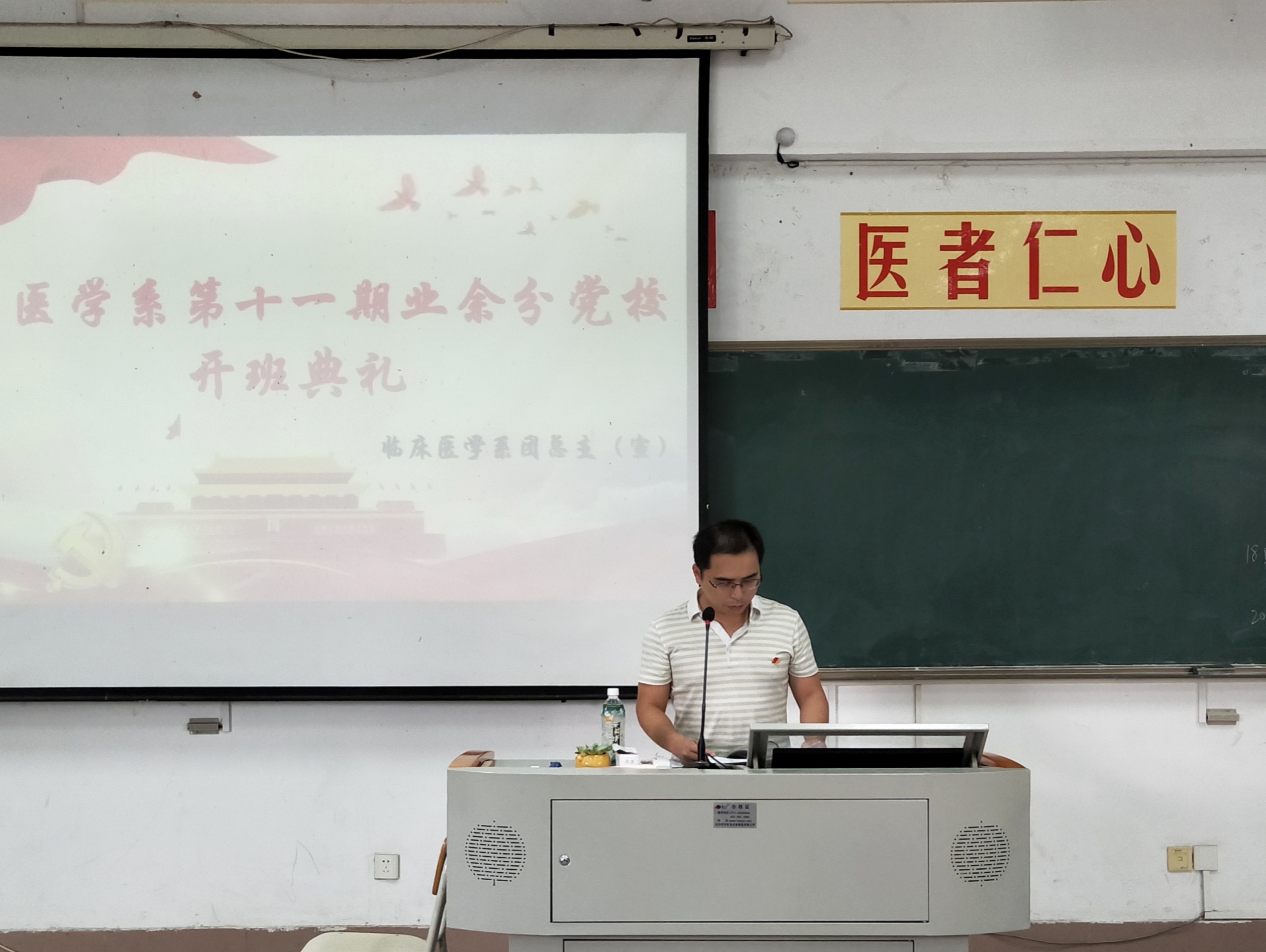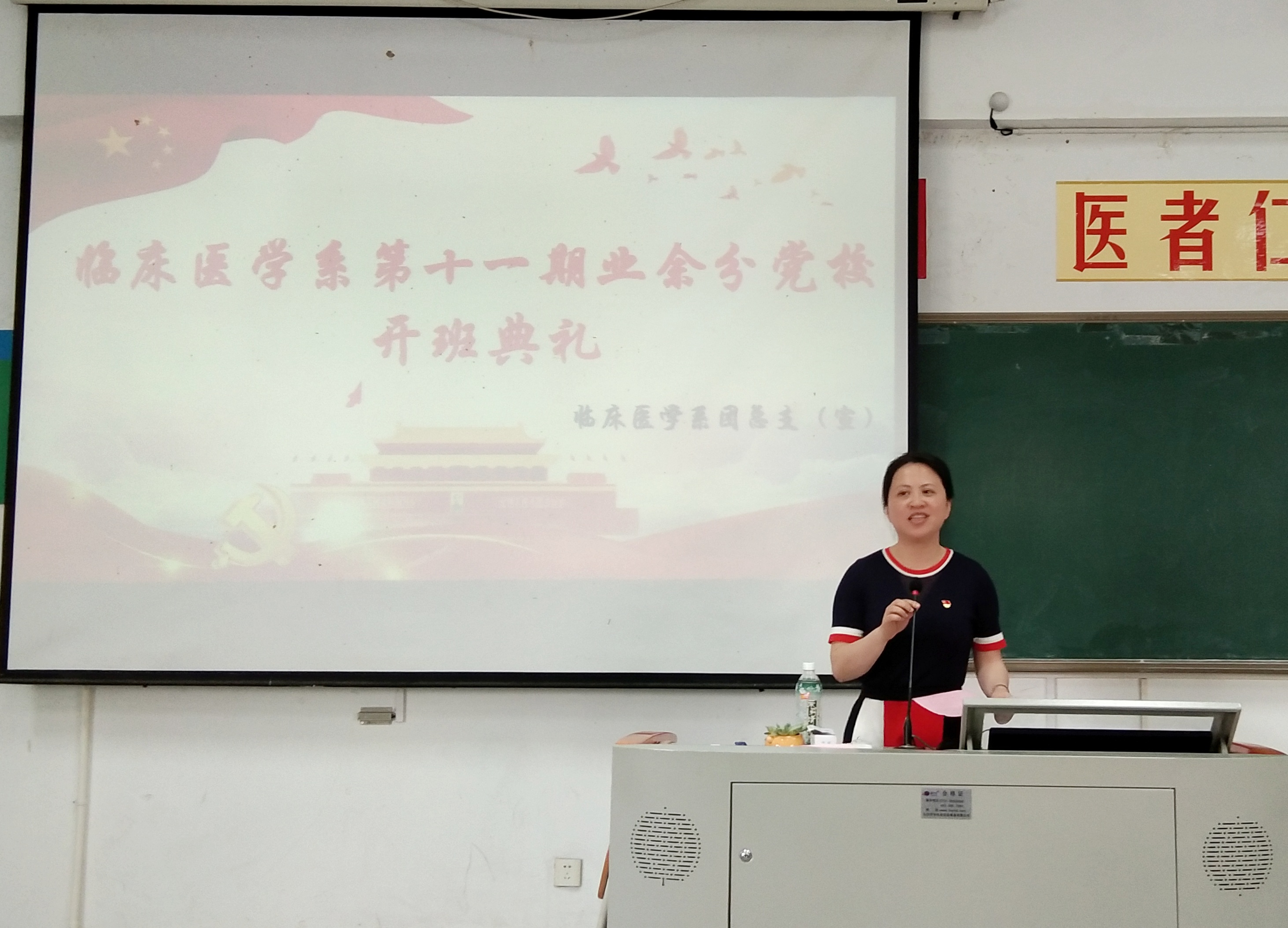 為做好我系學(xué)生黨員的發(fā)展工作,臨床醫(yī)學(xué)系第十一期業(yè)余黨校于2019年4月24日中午在基礎(chǔ)部二階舉行開班儀式。臨床醫(yī)學(xué)系郭禮堅(jiān)主任、系黨總支陳俊穎副書記、林浩副主任、第二黨支部葉家濤書記以及各支委和系團(tuán)總支各委員、第十一期入黨積極分子共同出席此次開班儀式。