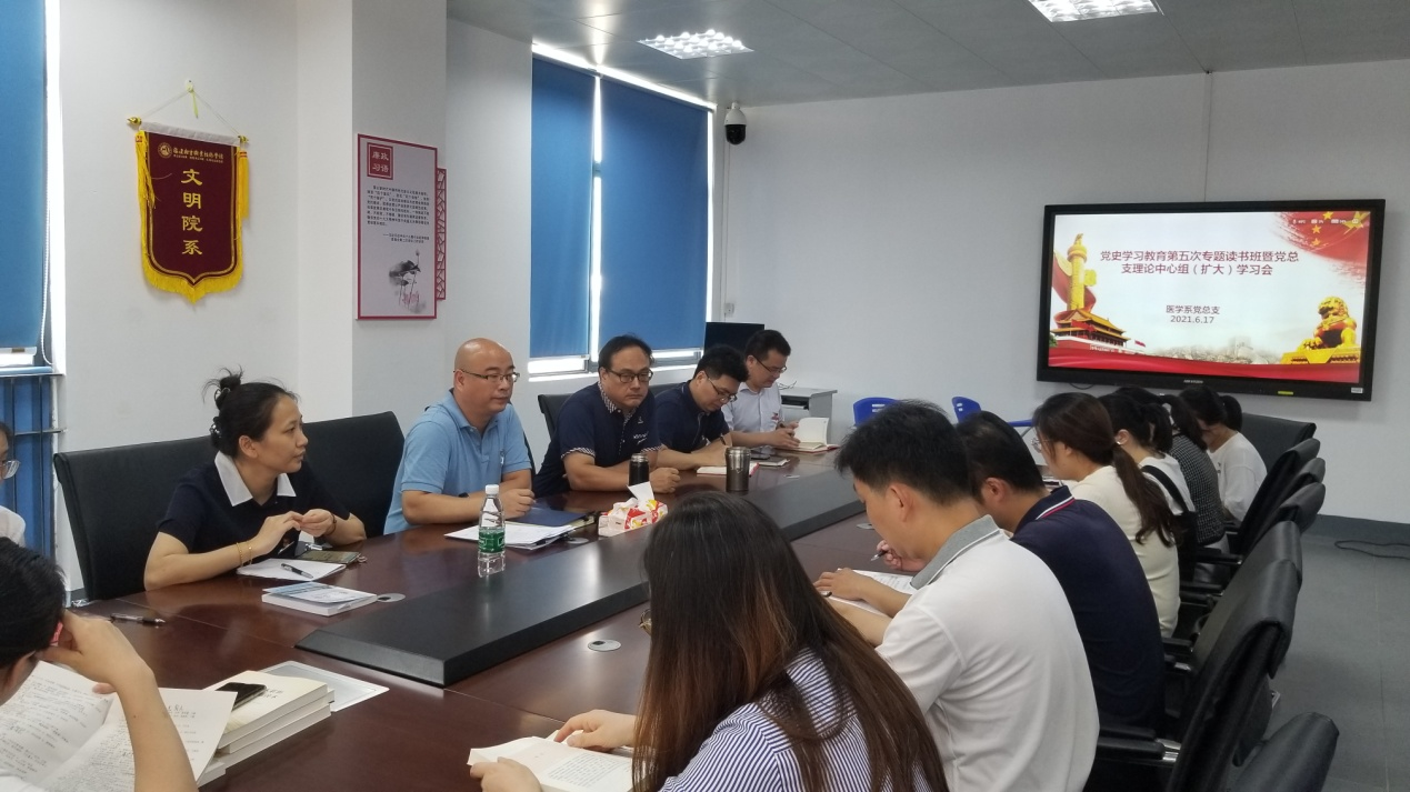 6月17日,醫(yī)學(xué)系在實(shí)訓(xùn)樓311召開黨總支理論學(xué)習(xí)中心組(擴(kuò)大)會(huì)議暨黨史學(xué)習(xí)教育第五次專題讀書班,學(xué)習(xí)《中國(guó)共產(chǎn)黨歷史》、《中國(guó)共產(chǎn)黨的九十年》以及《《解放戰(zhàn)爭(zhēng)》等內(nèi)容。