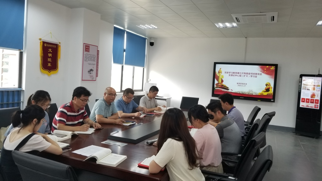 5月27日,醫(yī)學系在實訓樓311召開黨總支理論學習中心組(擴大)會議暨黨史學習教育第三次專題讀書班,學習“習近平總書記在中共中央政治局第二十九次集體學習上的重要講話精神”、“習近平在清華大學考察時的重要講話精神”以及《習近平新時代中國特色社會主義思想學習問答》中部分篇章。