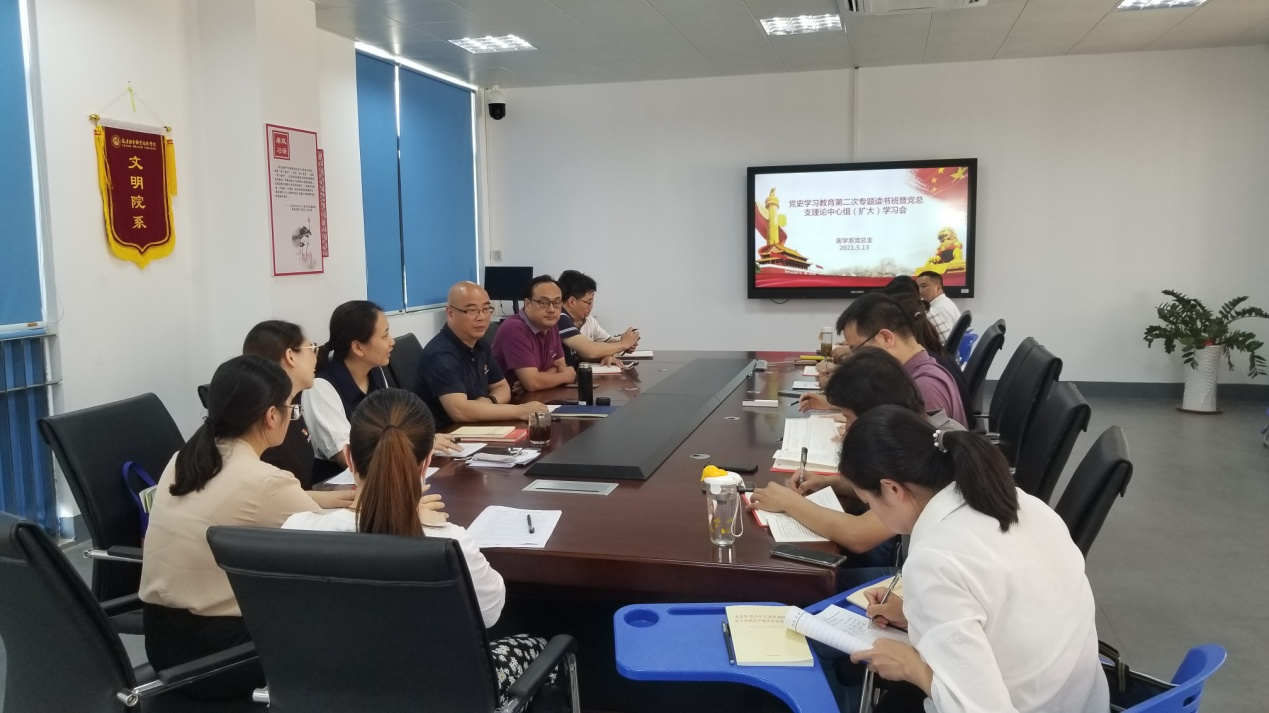5月13日,醫(yī)學(xué)系在實訓(xùn)樓311召開黨總支理論學(xué)習(xí)中心組(擴(kuò)大)會議暨黨史學(xué)習(xí)教育第二次專題讀書班,學(xué)習(xí)《毛澤東 鄧小平 江澤民 胡錦濤關(guān)于中國共產(chǎn)黨歷史論述摘編》中的“在延安在職干部教育動員大會上的講話”、 “《共產(chǎn)黨人》發(fā)刊詞” 、“改造我們的學(xué)習(xí)”、 “整頓黨的作風(fēng)”、“如何研究中共黨史”、 “在擴(kuò)大的中央工作會議上的講話”、“建設(shè)一個成熟的有戰(zhàn)斗力的黨”、 “貫徹調(diào)整方針,保證安定團(tuán)結(jié)”、 “學(xué)習(xí)學(xué)習(xí)再學(xué)習(xí)” 以及“努力建設(shè)高素質(zhì)的干部隊伍”等篇章。會議由系黨總支書記邱滾忠主持,醫(yī)學(xué)系黨政領(lǐng)導(dǎo)班子、總支委員以及各支部委員參加了會議。會上,系黨總支副書記陳潔、第二黨支部書記高長花誦讀了原文并做主題發(fā)言。