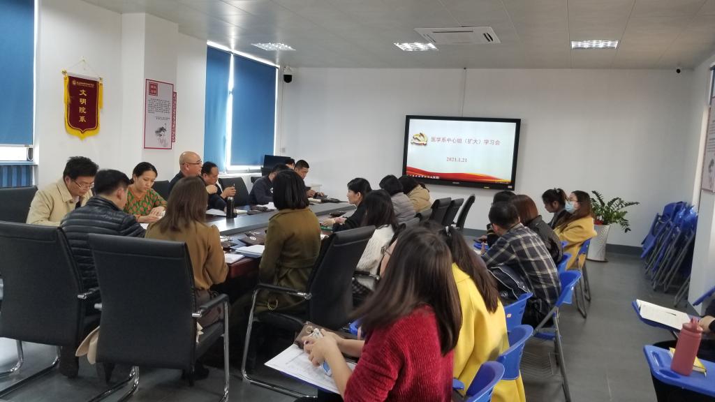 2021年1月21日,醫(yī)學系在實訓樓311召開黨總支理論學習中心組(擴大)會議。會議由系黨總支書記邱滾忠主持,醫(yī)學系黨政領導班子、總支委員、各支部委員及教研室主任參加了此次會議。