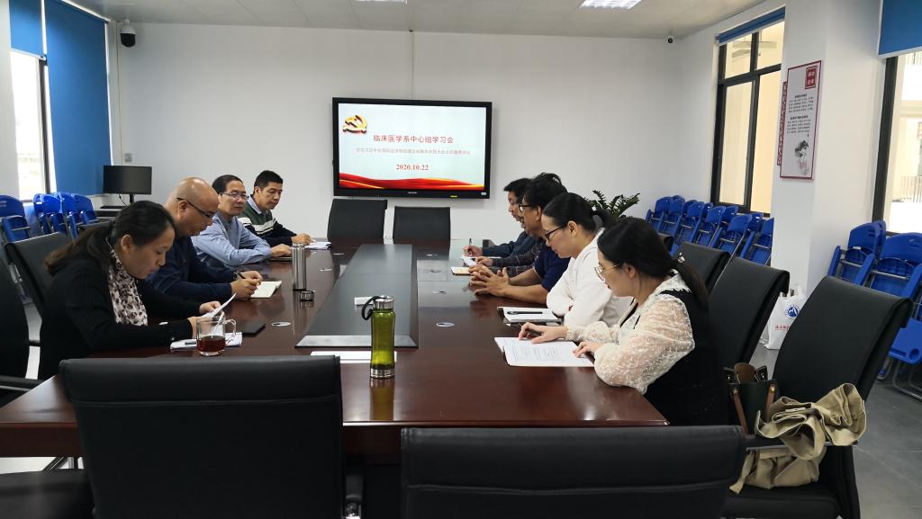 2020年10月22日,臨床醫(yī)學(xué)系在實(shí)訓(xùn)樓311召開中心組學(xué)習(xí)會(huì)議,學(xué)習(xí)《關(guān)于貫徹落實(shí)〈新時(shí)代高等學(xué)校思想政治理論課教師隊(duì)伍建設(shè)規(guī)定〉的實(shí)施方案》、《思政課是落實(shí)立德樹人根本任務(wù)的關(guān)鍵課程》、《關(guān)于開展向“時(shí)代楷?!遍}寧對(duì)口扶貧協(xié)作援寧群體學(xué)習(xí)活動(dòng)的決定》和《習(xí)近平在深圳經(jīng)濟(jì)特區(qū)建立40周年慶祝大會(huì)上的講話》,會(huì)議由系黨總支負(fù)責(zé)人邱滾忠同志主持。