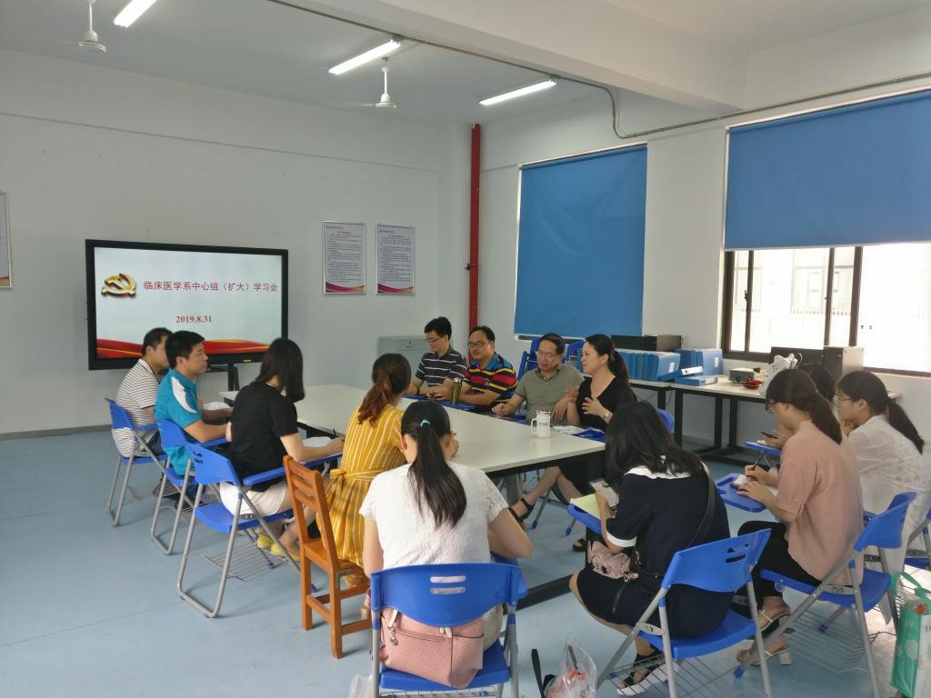 2019年8月31日, 臨床醫(yī)學(xué)系在系部會(huì)議室召開(kāi)中心組學(xué)習(xí)(擴(kuò)大)會(huì)議,學(xué)習(xí)2019年福建省哲學(xué)社會(huì)科學(xué)教學(xué)科研骨干研修班精神,會(huì)議由黨總支負(fù)責(zé)人陳俊穎同志主持。