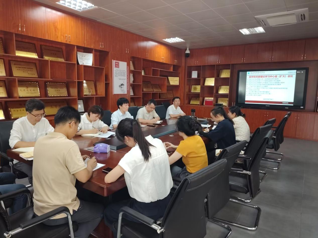 6月19日,醫(yī)學(xué)院召開黨委理論學(xué)習(xí)中心組(擴(kuò)大)會議暨學(xué)習(xí)教育讀書班學(xué)習(xí)。黨委書記黃小芳主持會議,學(xué)院黨政班子成員,各黨支部支委,團(tuán)總支書記參加學(xué)習(xí)。