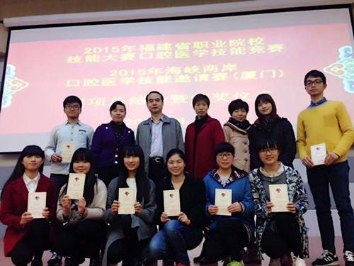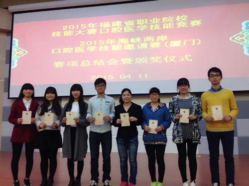 由福建省教育廳、福建省人力資源和社會(huì)保障廳、福建省衛(wèi)生和計(jì)劃生育委員會(huì)、福建省總工會(huì)、共青團(tuán)福建省委、福建省中華職業(yè)教育社主辦,廈門醫(yī)學(xué)高等??茖W(xué)校承辦的2015年福建省職業(yè)院校技能大賽口腔醫(yī)學(xué)技能競賽暨2015年海峽兩岸口腔醫(yī)學(xué)技能邀請賽(廈門)于2015年4月11日在廈門醫(yī)學(xué)高等??茖W(xué)校如期舉辦了。我省廈門醫(yī)學(xué)高等??茖W(xué)校、漳州衛(wèi)生職業(yè)技術(shù)學(xué)院、泉州醫(yī)學(xué)高等??茖W(xué)校及我院四所高職院校的口腔醫(yī)學(xué)專業(yè)學(xué)生以團(tuán)體形式各自組隊(duì)參賽,每所院校兩隊(duì),共8隊(duì)參加了本次省口腔醫(yī)學(xué)技能大賽。比賽共分4個(gè)組進(jìn)行,分別為牙體雕刻組、全口義齒排列組、窩洞制備組、牙體制備組。本次我省口腔醫(yī)學(xué)技能競賽承辦方廈門醫(yī)高專還邀請了臺灣的中臺科技大學(xué)、臺北醫(yī)學(xué)大學(xué)、天津醫(yī)高專、肇慶醫(yī)高專、深圳衛(wèi)生職業(yè)技術(shù)學(xué)院、蘇州衛(wèi)生職業(yè)技術(shù)學(xué)院、廣東惠州衛(wèi)職院等院校的口腔專業(yè)學(xué)生與我省四所高職院校的口腔學(xué)生共73名選手同場競技。