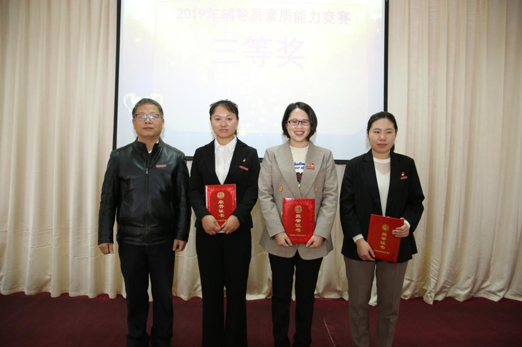 此次決賽,分為網(wǎng)文寫作、案例分析和理論宣講三個(gè)項(xiàng)目。在比賽現(xiàn)場(chǎng),我系的兩位輔導(dǎo)員能夠運(yùn)用自己扎實(shí)的工作基礎(chǔ),對(duì)學(xué)生問題進(jìn)行全面分析、精準(zhǔn)定位;在理論宣講環(huán)境,輔導(dǎo)員聲情并茂,運(yùn)用生動(dòng)事例,侃侃而談。經(jīng)過激烈的角逐,劉明鑫老師榮獲2019年學(xué)院輔導(dǎo)員素質(zhì)能力競(jìng)賽一等獎(jiǎng)(第二名),高長花老師榮獲三等獎(jiǎng)(第六名)的好成績(jī)。