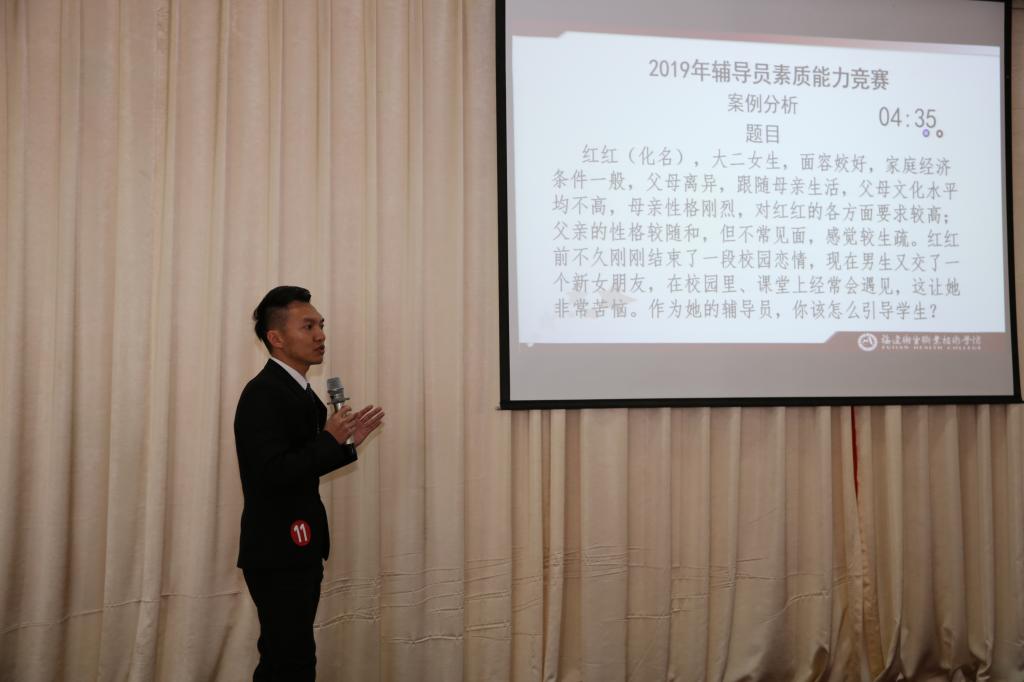 12月13日,學(xué)院2019年輔導(dǎo)員素質(zhì)能力競(jìng)賽的決賽在行政樓6樓會(huì)議室隆重舉行。經(jīng)過前期系部的初賽,我系選派了高長花、劉明鑫兩位輔導(dǎo)員代表臨床醫(yī)學(xué)系輔導(dǎo)員參賽。
