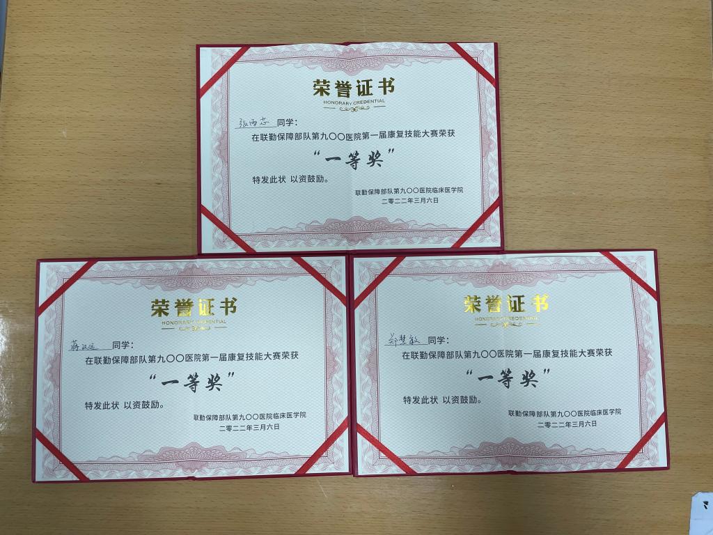 2022年3月6日,聯(lián)勤保障部隊(duì)第九〇〇醫(yī)院第一屆康復(fù)技能大賽圓滿(mǎn)結(jié)束,我院19級(jí)康復(fù)治療技術(shù)專(zhuān)業(yè)張雨芯、鄭慧敏、蔣致遠(yuǎn)3名學(xué)生榮獲團(tuán)體一等獎(jiǎng)。