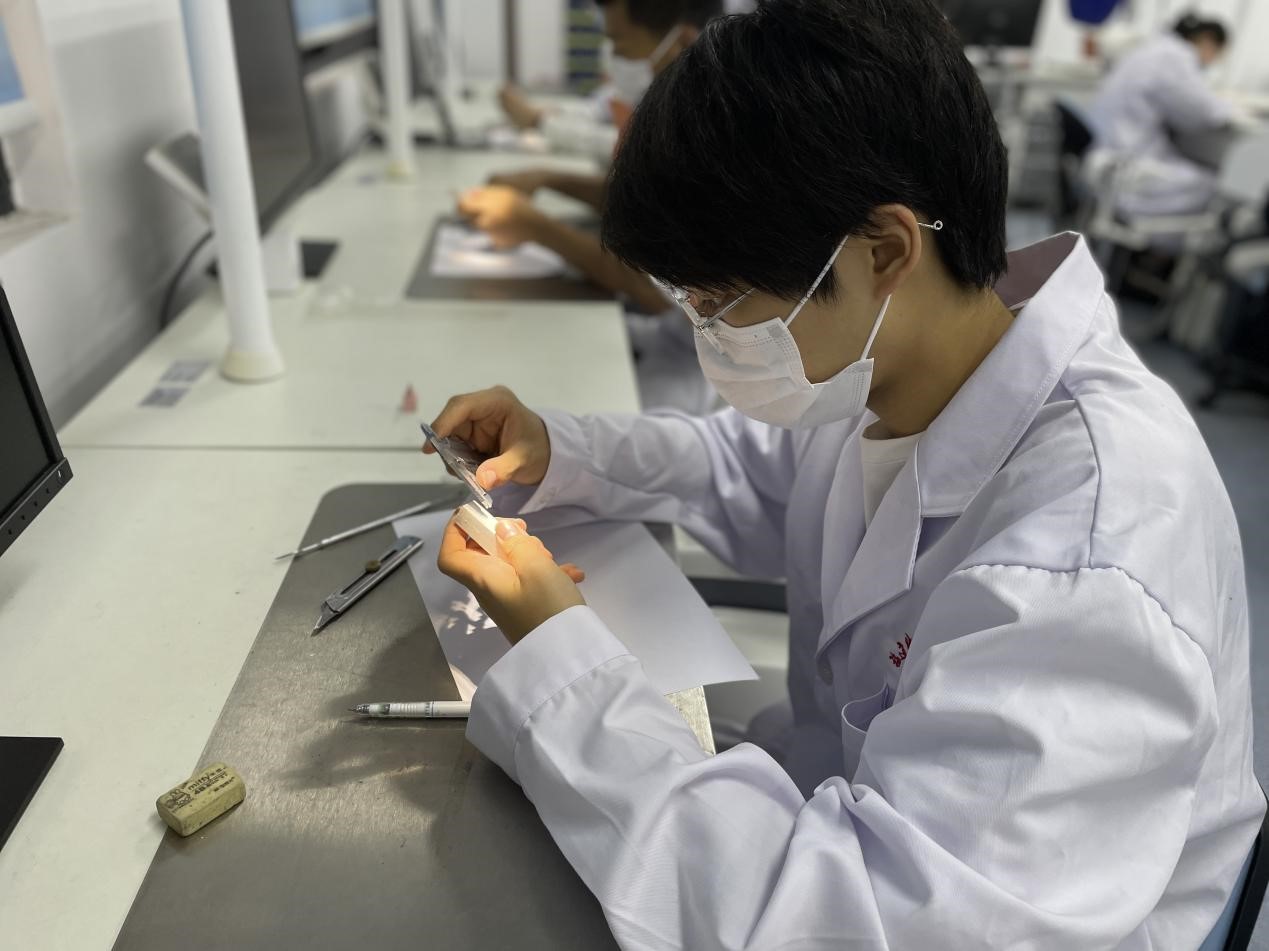 業(yè)精于勤荒于嬉,行成于思?xì)в陔S,為打造以賽促學(xué)的學(xué)習(xí)氛圍促進(jìn)教學(xué)和實踐的融合,同時也為了檢驗口腔醫(yī)學(xué)專業(yè)階段性教學(xué)成果,評估學(xué)生技術(shù)能力水平。2022年5月12日,醫(yī)學(xué)院口腔教研室、醫(yī)學(xué)院第一黨支部結(jié)合“職業(yè)教育周”面向2021級口腔醫(yī)學(xué)專業(yè)學(xué)生在實訓(xùn)樓205舉辦了“刻于形,精于心”主題牙體雕刻技能大賽。