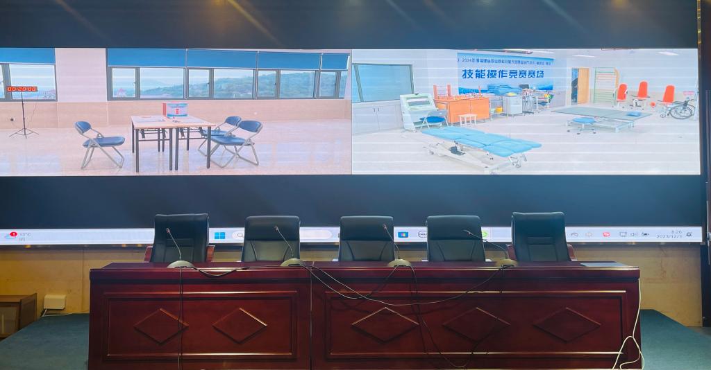本次比賽設(shè)置了觀摩室,各參賽院校的領(lǐng)隊(duì)與指導(dǎo)教師們通過在線高清直播觀看整場比賽。