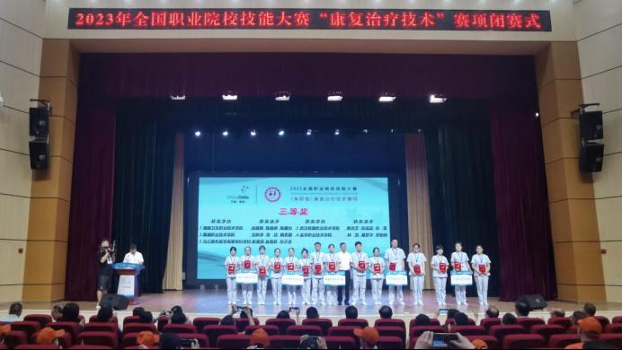 全國(guó)職業(yè)院校技能大賽2023年首次開(kāi)設(shè)了高職組康復(fù)治療技術(shù)賽項(xiàng),賽項(xiàng)內(nèi)容包括理論知識(shí)競(jìng)賽和技能操作競(jìng)賽兩部分。理論知識(shí)競(jìng)賽采取計(jì)算機(jī)考試形式,旨在考核參賽選手的專(zhuān)業(yè)知識(shí)應(yīng)用能力、臨床思維能力、分析能力和解決問(wèn)題能力。在技能操作競(jìng)賽中,三位選手頂住壓力,沉著應(yīng)戰(zhàn),克服末位出場(chǎng)的劣勢(shì),最終獲得團(tuán)體三等獎(jiǎng),充分展現(xiàn)康復(fù)治療技術(shù)專(zhuān)業(yè)教學(xué)成果及人才培養(yǎng)質(zhì)量。