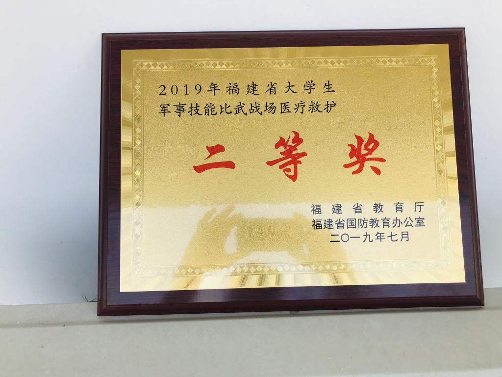 全省高校32支參賽隊(duì)伍,決出一等獎(jiǎng)2名,二等獎(jiǎng)4名,三等獎(jiǎng)6名,我校成績位列第6,前5位均為本科院校,獲得“2019年福建省大學(xué)生軍事技能比武戰(zhàn)場(chǎng)救護(hù)項(xiàng)目”二等獎(jiǎng)的出色成績!