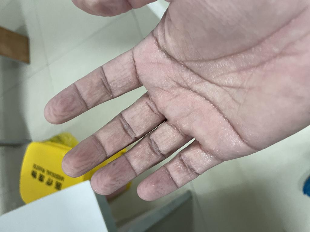 此時(shí)此刻的他們,儼然已經(jīng)從懵懂少年蛻變成能獨(dú)當(dāng)一面的戰(zhàn)士,雖然還只是實(shí)習(xí)生,但這場(chǎng)戰(zhàn)役對(duì)他們的考驗(yàn)并沒有因此而降低標(biāo)準(zhǔn),一套防護(hù)服一穿就是七八個(gè)小時(shí),期間不能喝水,甚至不能上廁所。脫下手套和防護(hù)服的一瞬間,我們見到的那一雙雙被汗水浸濕褶皺的手,那是令人敬仰的雙手。