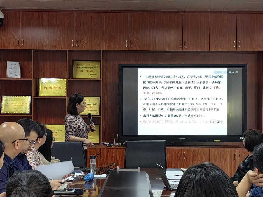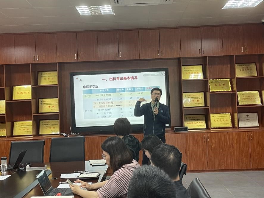 2023年4月13日,醫(yī)學(xué)院組織開(kāi)展國(guó)控專業(yè)學(xué)生崗位實(shí)習(xí)大出科考核工作交流會(huì)。中醫(yī)專業(yè)帶頭人陳銘、口腔專業(yè)帶頭人馬清璇及外科教研室主任劉景城分別對(duì)中醫(yī)、針推、口腔和臨床專業(yè)的考核情況進(jìn)行了匯報(bào),醫(yī)學(xué)院全體教師參加交流會(huì)。