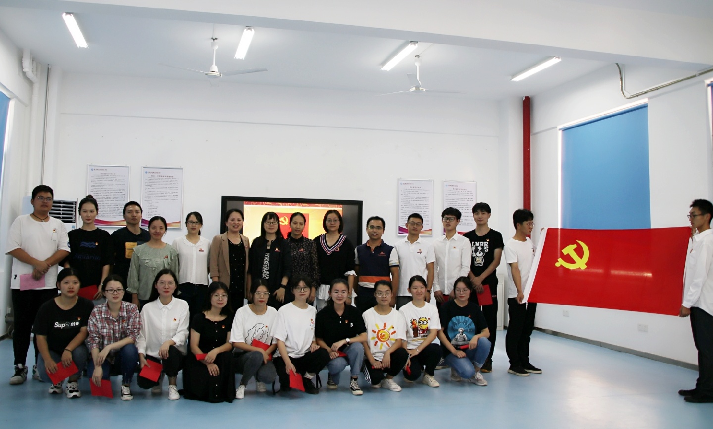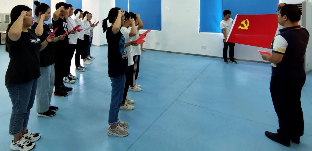宣誓儀式由葉家濤同志主持,在莊嚴的《國際歌》中活動拉開帷幕。葉家濤同志宣讀新黨員名單并帶領他們在黨旗前莊嚴宣誓,表達了為黨的事業(yè)奮斗終身的決心,參加活動的老黨員也重溫了入黨誓詞。新黨員代表王繼鑒同學發(fā)言,表示會在以后的工作和學習中牢記入黨誓詞。老黨員代表謝林輝老師分享自身感受并希望大家在未來的時間里牢記使命,做一名優(yōu)秀的黨員。熊美蘭院長與陳俊穎副書記也對新黨員們提出了希望,希望他們不僅要在思想上、行為上入黨,更要牢記黨的宗旨,履行黨員義務;希望他們能牢記今天在黨旗下的誓言,不忘入黨的初心,全心全意為人民服務。