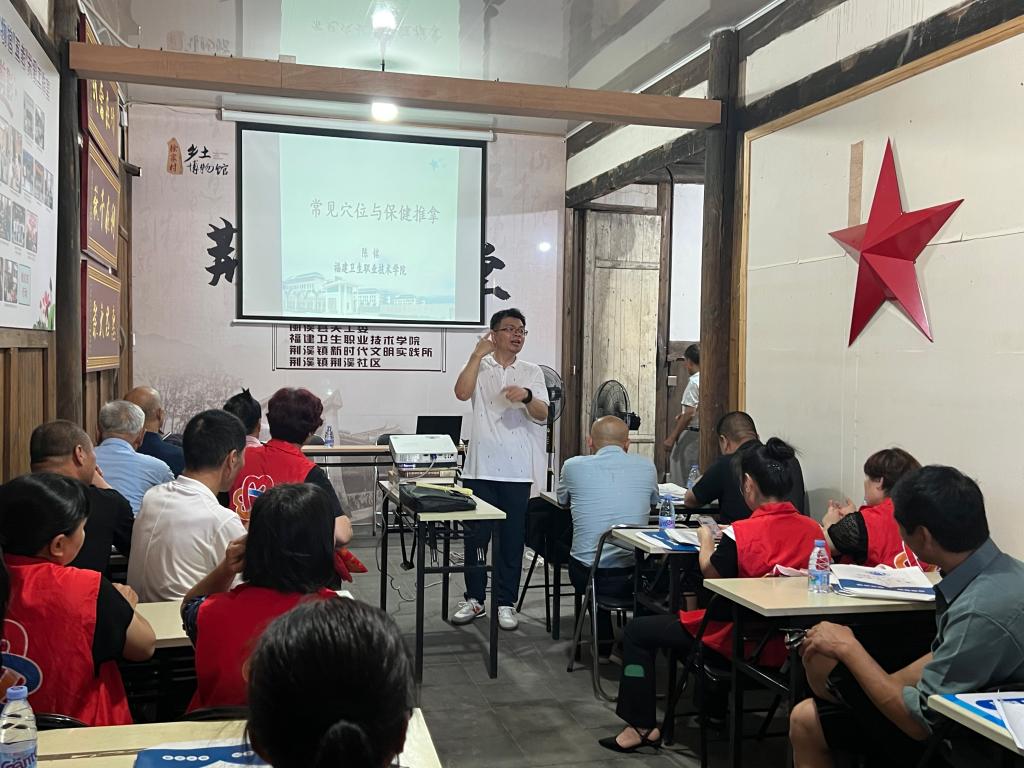 活動(dòng)現(xiàn)場(chǎng),支部書(shū)記陳銘為群眾講解了一堂《常用穴位與保健按摩》課程,他通過(guò)通俗易懂的語(yǔ)言,讓大家學(xué)會(huì)了常用穴位的位置、作用以及養(yǎng)生保健的小妙招。
