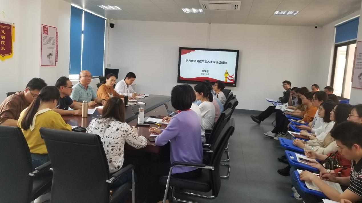 2021年4月1日下午,醫(yī)學系在系部會議室召開了學習習近平總書記來閩考察重要講話精神討論會,本次會議由醫(yī)學系黨總支書記邱滾忠同志主持,系部領導及全體教職工參加了此次會議。