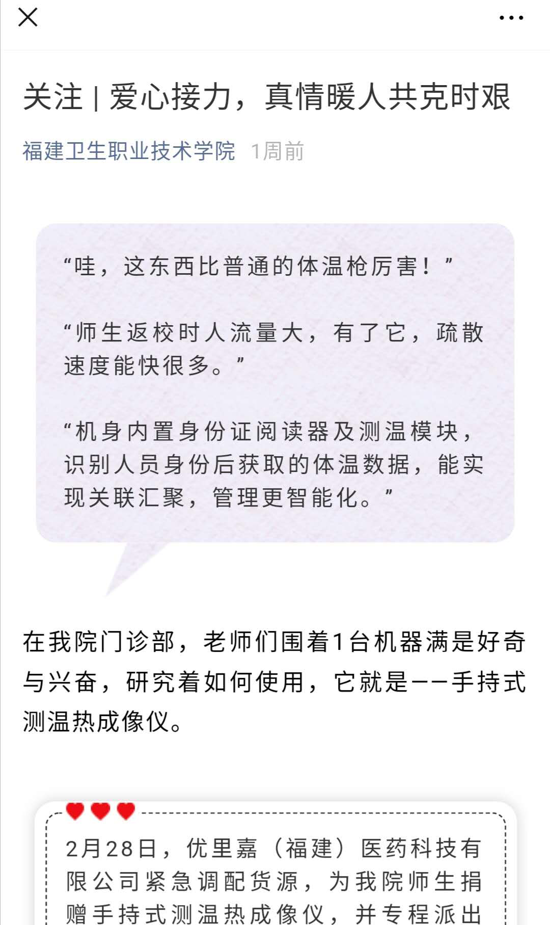 三、衛(wèi)生防疫組:聯(lián)合門(mén)診部開(kāi)展體溫槍捐贈(zèng)活動(dòng)。