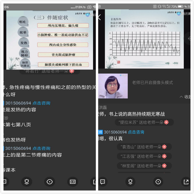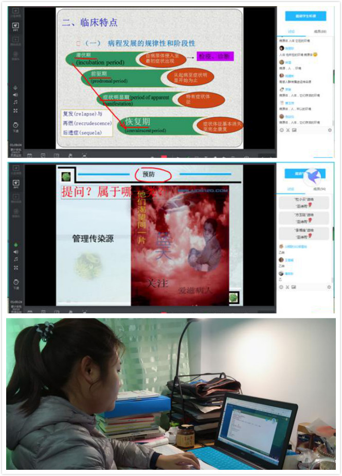 教研室的金建文老師本學(xué)期授課的課程是《診斷學(xué)》,這是一門(mén)重要的專業(yè)基礎(chǔ)課程,如何確保學(xué)生在網(wǎng)絡(luò)授課期間,能夠跟在校內(nèi)教室中一樣的學(xué)習(xí)效果呢,金老師一直在思考這個(gè)問(wèn)題,畢竟網(wǎng)絡(luò)授課是以前未曾開(kāi)展的,用什么平臺(tái)可以保障順利上課?用怎樣的方式跟學(xué)生進(jìn)行更好的溝通?考慮到同學(xué)們手頭沒(méi)有教材,為了不影響學(xué)習(xí),金老師在課前把教材進(jìn)行拍照,提前發(fā)給同學(xué)們進(jìn)行預(yù)習(xí);在開(kāi)始授課之前,金老師心中一直忐忑不安,擔(dān)心無(wú)法很好的開(kāi)展網(wǎng)絡(luò)授課,影響教學(xué)效果,因此,提前很久就開(kāi)始研究各種教學(xué)軟件的優(yōu)劣;最后,利用騰訊課堂錄播+直播的網(wǎng)絡(luò)教學(xué)形式,順利的開(kāi)展了第一次的網(wǎng)絡(luò)授課,在授課過(guò)程中,不僅課件、視頻播放順暢,還能夠利用軟件跟學(xué)生開(kāi)展多種形式的溝通互動(dòng),在上課過(guò)程中,同學(xué)們對(duì)于這種全新的教學(xué)方式也都非常感興趣,課堂氣氛非?;钴S,通過(guò)平臺(tái),跟老師積極的互動(dòng)、交流,圓滿的進(jìn)行了教學(xué)內(nèi)容的學(xué)習(xí);課后,為了幫助同學(xué)們更好的掌握學(xué)習(xí)內(nèi)容,金老師又利用云班課軟件進(jìn)行了多種形式的課外輔導(dǎo),發(fā)布小測(cè)、授課PPT等內(nèi)容,同學(xué)們也都認(rèn)真的按照老師的要求進(jìn)行了課外的復(fù)習(xí)小測(cè),取得了很好的學(xué)習(xí)效果。