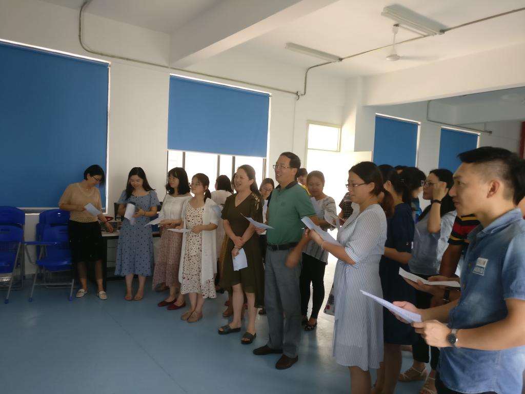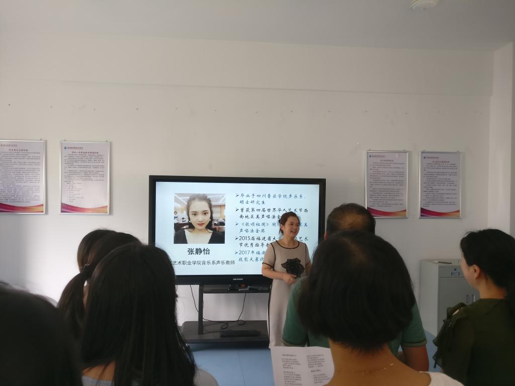 張老師以講、唱、演的方式,生動幽默地解析藏在我們聲音里的奧秘,在場的老師們紛紛表示老師的課通俗易懂,不僅從多個角度對嗓音進行調(diào)理,幫助美化嗓音,并且訓(xùn)練大家的發(fā)音技巧,為慶祝中華人民共和國成立70周年合唱比賽做好充分的準(zhǔn)備。