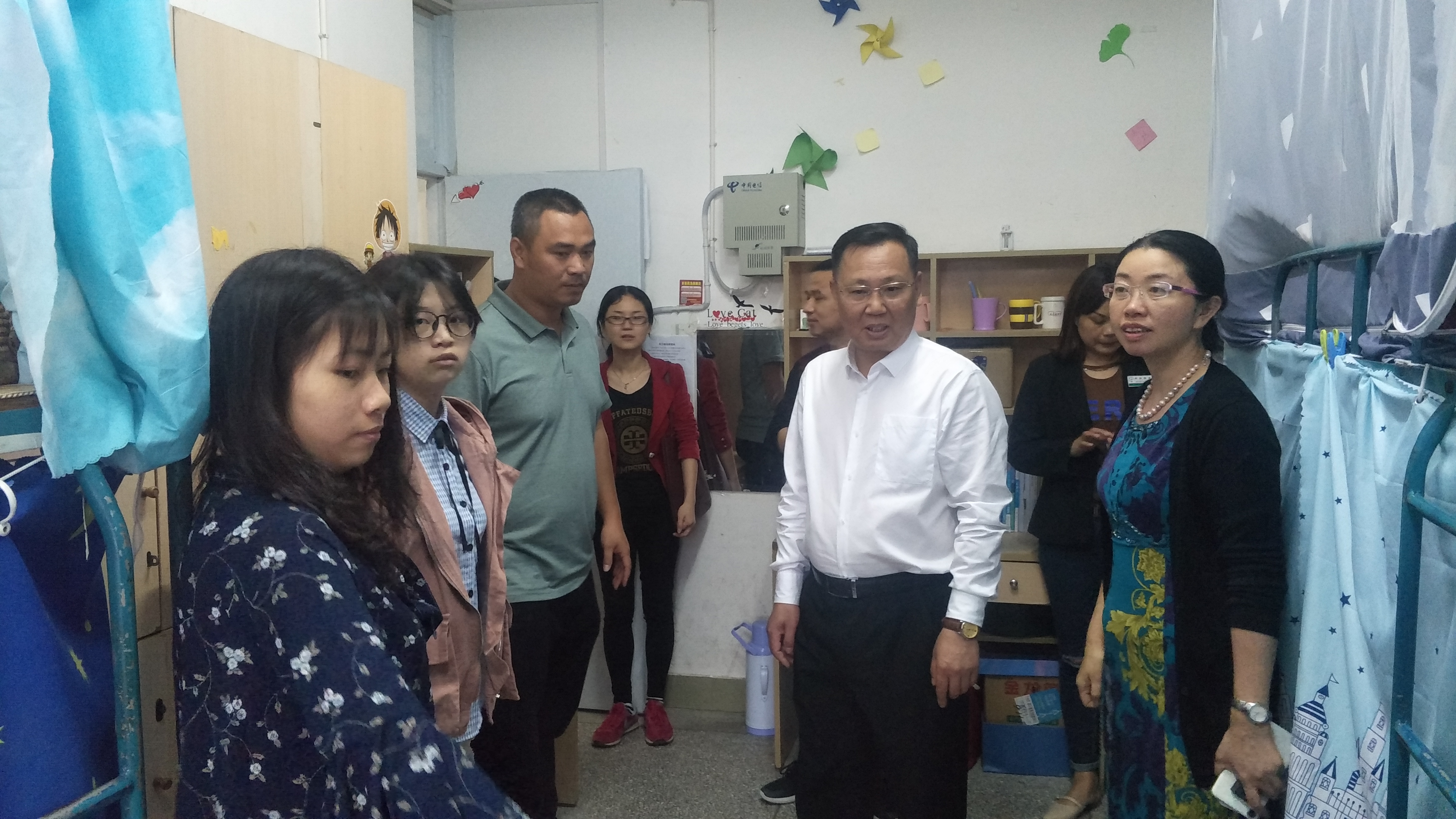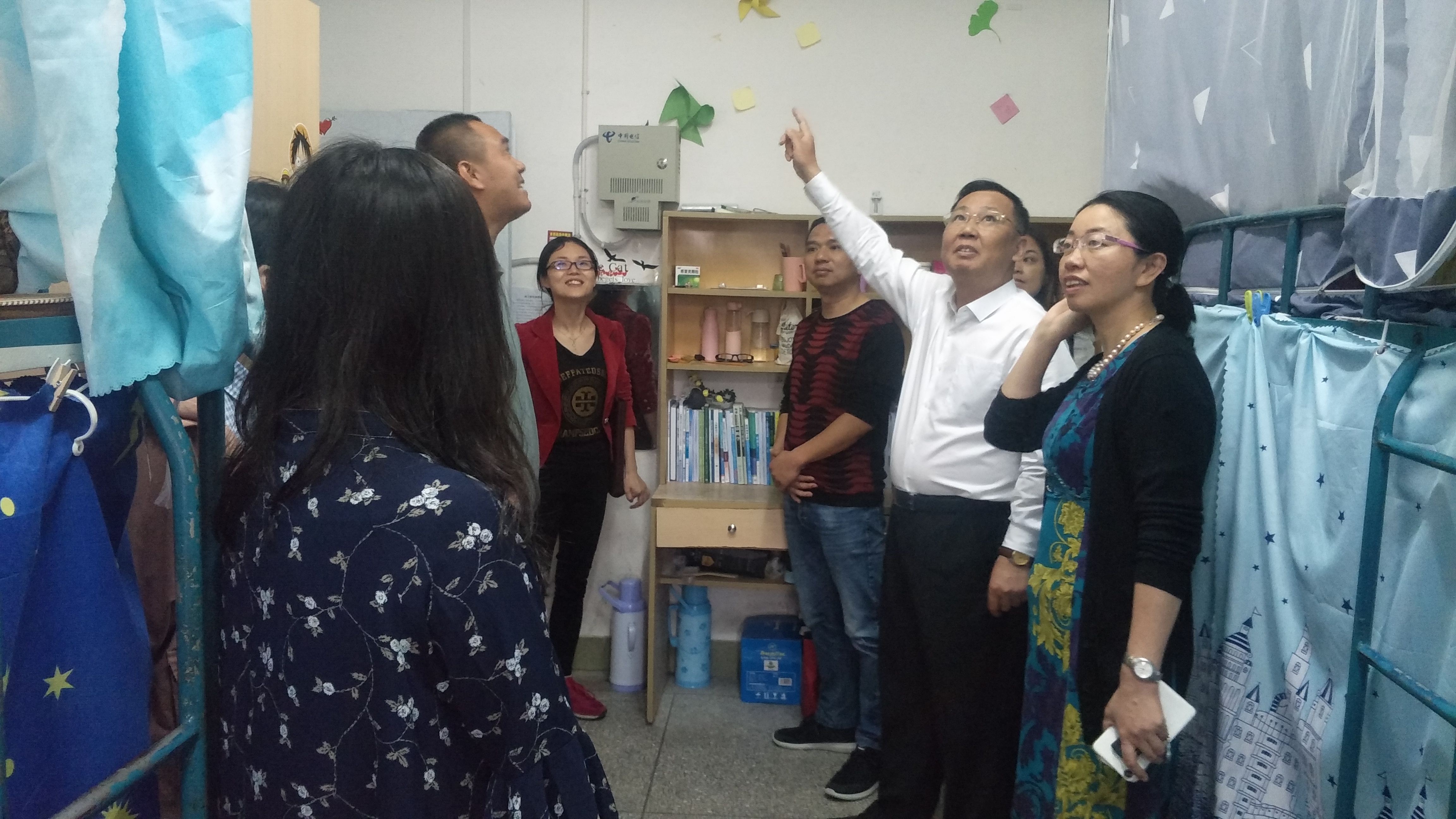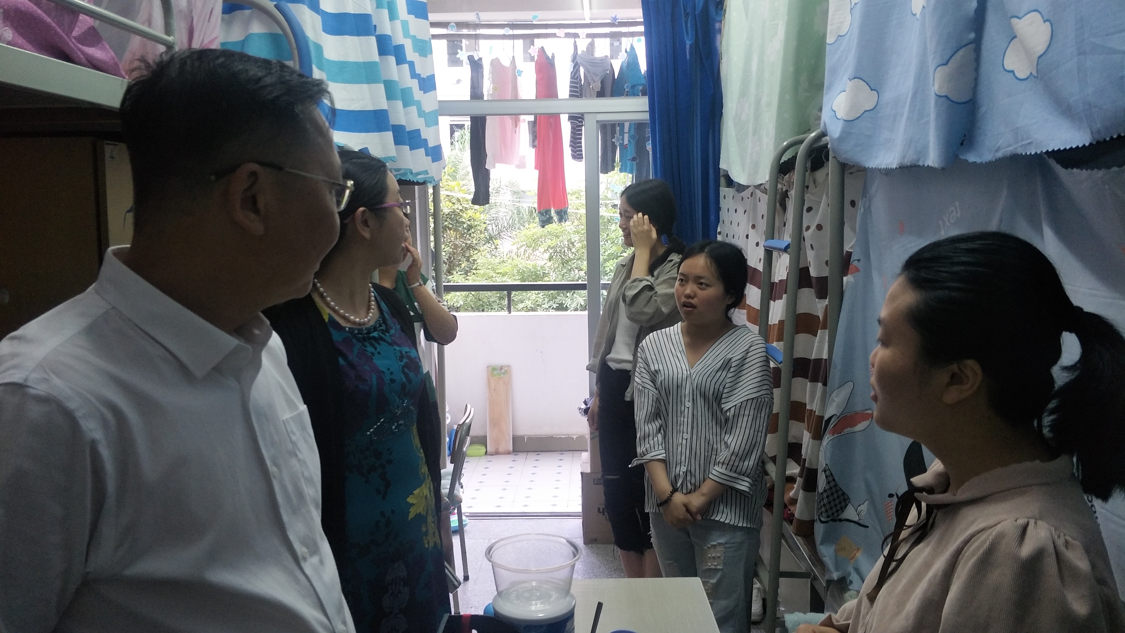 曾書記、黃副院長仔細察看了同學們的住宿條件,并與同學們進行了親切的交談。詢問了同學們在校期間的學習、生活、宿舍衛(wèi)生安全等狀況,深入了解了同學們目前面臨的一些困難,并對學生的生活、學習等方面的問題給出了一些指導性建議,提醒學生注意用電安全和人身安全,防詐騙傳銷等問題,并對同學們各種疑問進行詳盡的解答,和藹可親的態(tài)度感染身邊每一人。同學們也熱情迎接,積極響應,寢室里洋溢著師生間融融情誼。