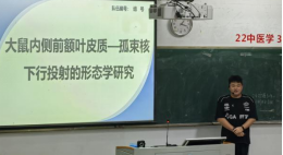 活動(dòng)中,解剖教研室主任陳英標(biāo)老師就今年指導(dǎo)的項(xiàng)目《大鼠內(nèi)側(cè)前額葉皮質(zhì)——孤束核下行投射的形態(tài)學(xué)研究》做總結(jié)分享,他指出參賽同學(xué)在備賽過(guò)程要多參與實(shí)驗(yàn)操作、掌握實(shí)驗(yàn)的每個(gè)環(huán)節(jié)涉及的理論知識(shí),同時(shí)團(tuán)隊(duì)比賽非??简?yàn)合作能力,組員之間多交流、積極參與每次的組會(huì)交流,培養(yǎng)團(tuán)隊(duì)默契,才能在比賽答辯環(huán)節(jié)取得更好的成績(jī)。