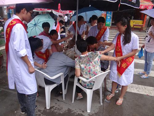 志愿者們身著工作服,早早就來(lái)到了社區(qū),熱情地為來(lái)診者測(cè)量血壓、推拿拔罐、口腔保健等,還耐心地對(duì)村民進(jìn)行健康宣傳,解答他們的疑問(wèn),幫助村民樹(shù)立良好的健康意識(shí),改善其健康狀況。短短一上午就為近百名村民進(jìn)行了健康義診,同時(shí)還送上了防暑降溫藥品以及一些家庭常備藥品,以備村民們防暑應(yīng)急所用。