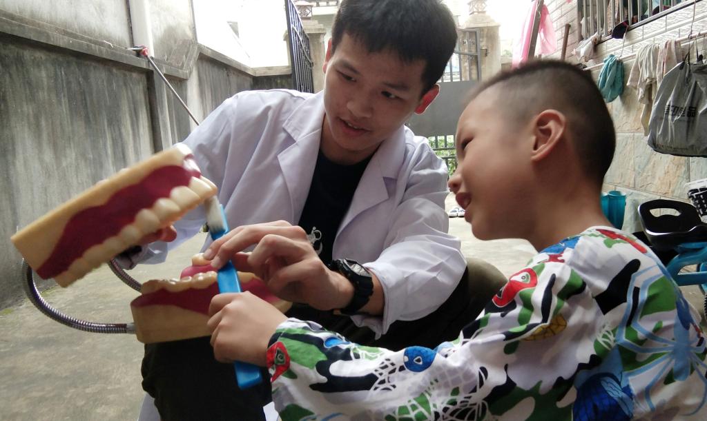 在衛(wèi)生院主任的帶領(lǐng)下團隊來到留守兒童家里并送上學(xué)習(xí)用具、常用藥品及生活品作為禮物,孩子們拿到禮物之后都很開心與感激。在與爺爺奶奶短暫的交談中了解到孩子的學(xué)習(xí)情況、家庭情況以及學(xué)習(xí)中遇到的問題,老師們對部分問題也給出相應(yīng)的建議和鼓勵他們要保持樂觀的心態(tài),認真學(xué)習(xí)。與此同時,口腔專業(yè)同學(xué)為他們做口腔知識宣講和傳授正確的刷牙方式。
