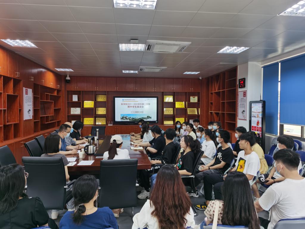 為促進(jìn)師生的溝通與交流,收集學(xué)生在前半學(xué)期課堂學(xué)習(xí)中遇到的問(wèn)題,醫(yī)學(xué)院于2022年4月26日中午在實(shí)訓(xùn)樓311會(huì)議室召開(kāi)期中座談會(huì)。參加此次會(huì)議的有學(xué)校督導(dǎo)唐榮耀、唐青,醫(yī)學(xué)院副院長(zhǎng)(主持工作)鄧元榮、副院長(zhǎng)兼實(shí)訓(xùn)中心主任林國(guó)威,副院長(zhǎng)兼辦公室主任劉能英以及醫(yī)學(xué)院20、21級(jí)各班學(xué)委代表。