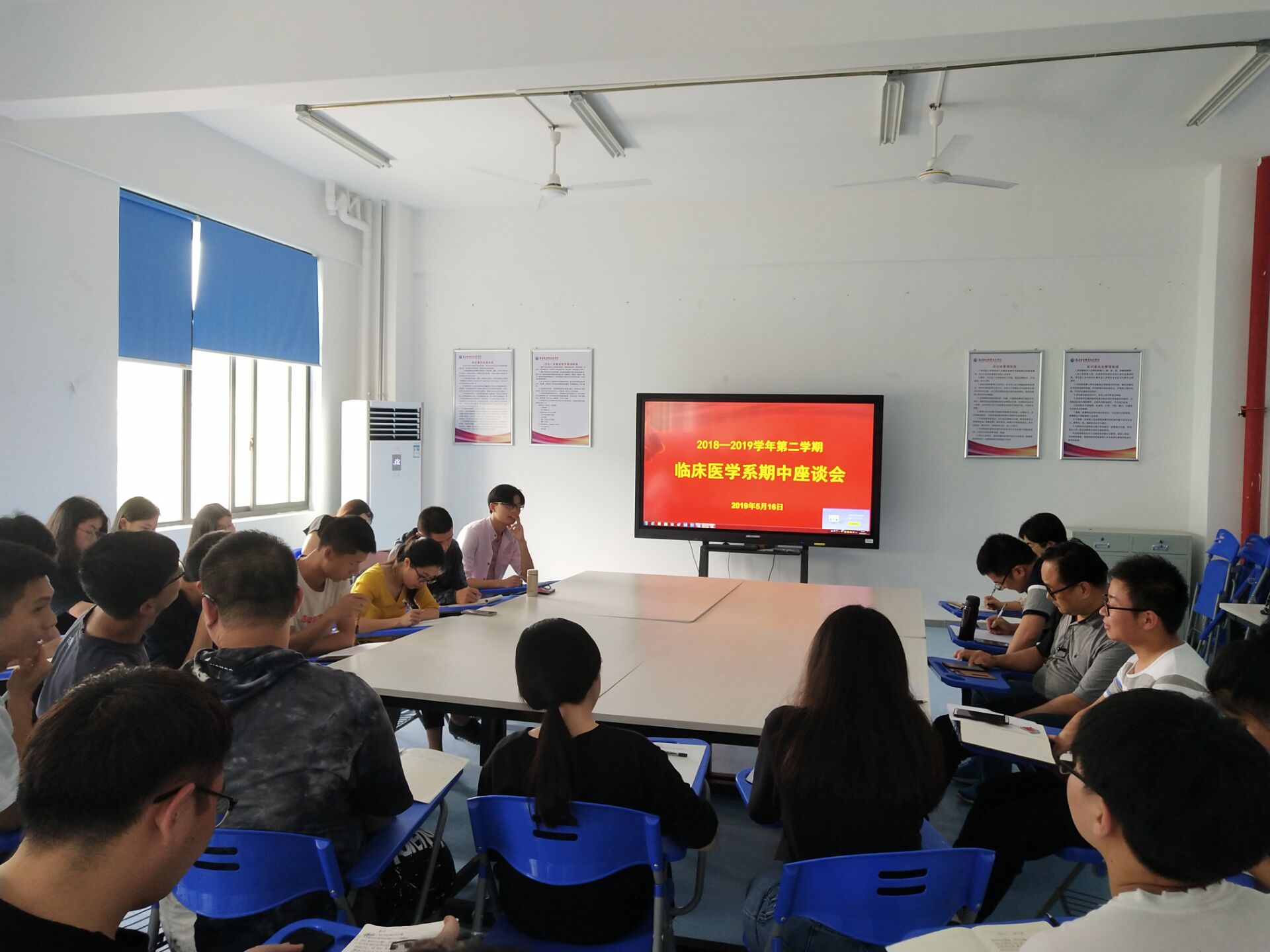 2019年5月16日,臨床醫(yī)學系在實訓樓401召開2018-2019學年第二學期期中座談會。督導室葉榕、陳順萍老師,臨床醫(yī)學系林國威副主任、林浩副主任、童輝燕老師,學習部長以及臨床、中醫(yī)、口腔、康復治療技術(shù)、針灸推拿專業(yè)學習委員作為學生代表參加了本次會議。