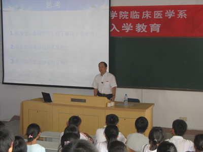 9月3日,在臨床醫(yī)學(xué)系的第二階梯教室,由臨床醫(yī)學(xué)系林志明常務(wù)副主任主持召開了2008級(jí)新生入學(xué)教育。臨床醫(yī)學(xué)系主任魏真主任醫(yī)師從學(xué)校及學(xué)院概況、課程設(shè)計(jì)、學(xué)業(yè)要求等幾個(gè)方面的闡述讓新同學(xué)對(duì)自己所學(xué)的專業(yè)有了全面的認(rèn)識(shí)。