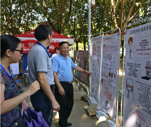 此次迎新工作受到院領(lǐng)導(dǎo)高度重視。上午,院黨委書(shū)記曾武祈、黨委副書(shū)記林建團(tuán)親臨我系報(bào)到點(diǎn),了解報(bào)到情況、慰問(wèn)現(xiàn)場(chǎng)工作人員和志愿者。兩位領(lǐng)導(dǎo)對(duì)迎新專(zhuān)業(yè)漫畫(huà)海報(bào)表達(dá)了濃厚的興趣,表示非常的有創(chuàng)意。隨后,還體驗(yàn)了康樂(lè)工作室的推拿,對(duì)與專(zhuān)業(yè)結(jié)合的服務(wù)介紹表示了充分的肯定。