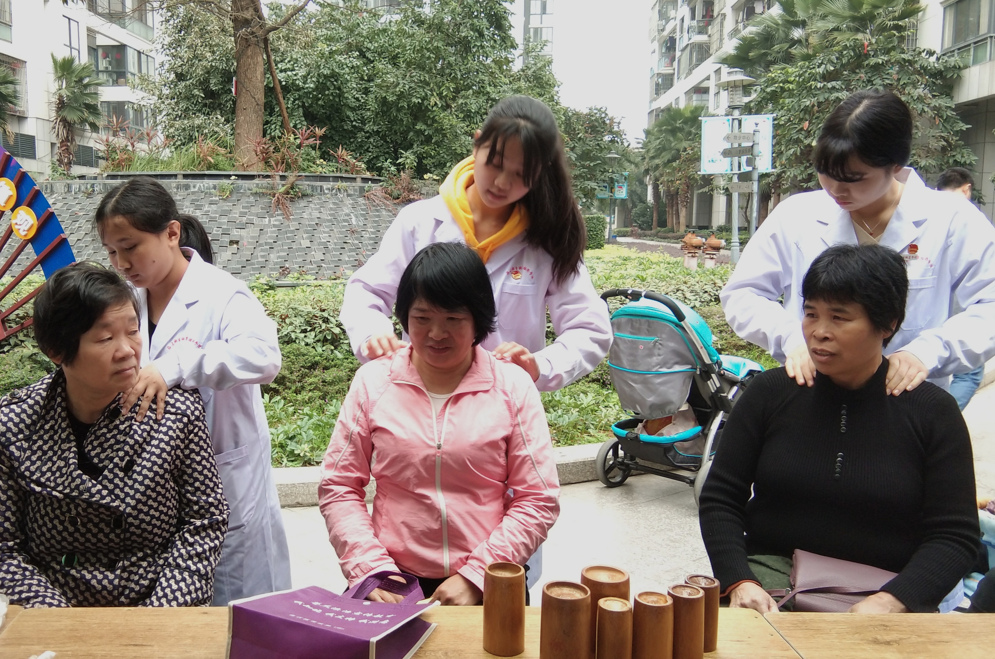 義診開始,部分居民們紛紛前往義診地點(diǎn)。同學(xué)們熱心的為前來的居民們提供測(cè)量血壓、測(cè)量血糖、拔罐按摩等,對(duì)高血壓、高血糖的居民們給出相應(yīng)醫(yī)學(xué)建議和在生活中的注意事項(xiàng)?,F(xiàn)場(chǎng)還進(jìn)行了保健按摩、拔罐等服務(wù)。對(duì)前來咨詢的居民,同學(xué)們根據(jù)不同情況并結(jié)合專業(yè)知識(shí)耐心的為其解答,獲得了居民們的認(rèn)可與贊揚(yáng)。