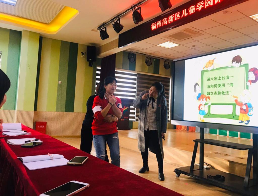 2019年11月29日下午,臨床醫(yī)學(xué)系在福州高新區(qū)兒童學(xué)園舉辦了關(guān)于“保育員衛(wèi)生保健”的技能培訓(xùn)科普講座,該活動(dòng)是2019年福建省科技周暨終身教育活動(dòng)的一部分,由臨床醫(yī)學(xué)系外科教研室巫詩(shī)雨老師及閩侯南嶼高新區(qū)兒童學(xué)園10余名保育員共同參與?;顒?dòng)開(kāi)始,巫詩(shī)雨老師針對(duì)保育員日常工作內(nèi)容的特殊性,通過(guò)提問(wèn)的方式讓座保育員們充分了解到“手衛(wèi)生”的重要性,以及洗手是預(yù)防疾病,促進(jìn)兒童健康成長(zhǎng)最簡(jiǎn)單、最廉價(jià)的健康干預(yù)方式。然后通過(guò)形象的洗手口訣“內(nèi)、外、夾、弓、大、立、腕”現(xiàn)場(chǎng)演示了標(biāo)準(zhǔn)七步洗手法。活動(dòng)的第二部分,巫詩(shī)雨老師圍繞氣道異物梗阻這一常見(jiàn)兒童意外損傷的處理方法,以“他救、自救、特殊人群救治”三方面深入淺出地為各位保育員進(jìn)行了“海姆立克急救法”的講解,并現(xiàn)場(chǎng)示范教學(xué)與大家進(jìn)行互動(dòng)。