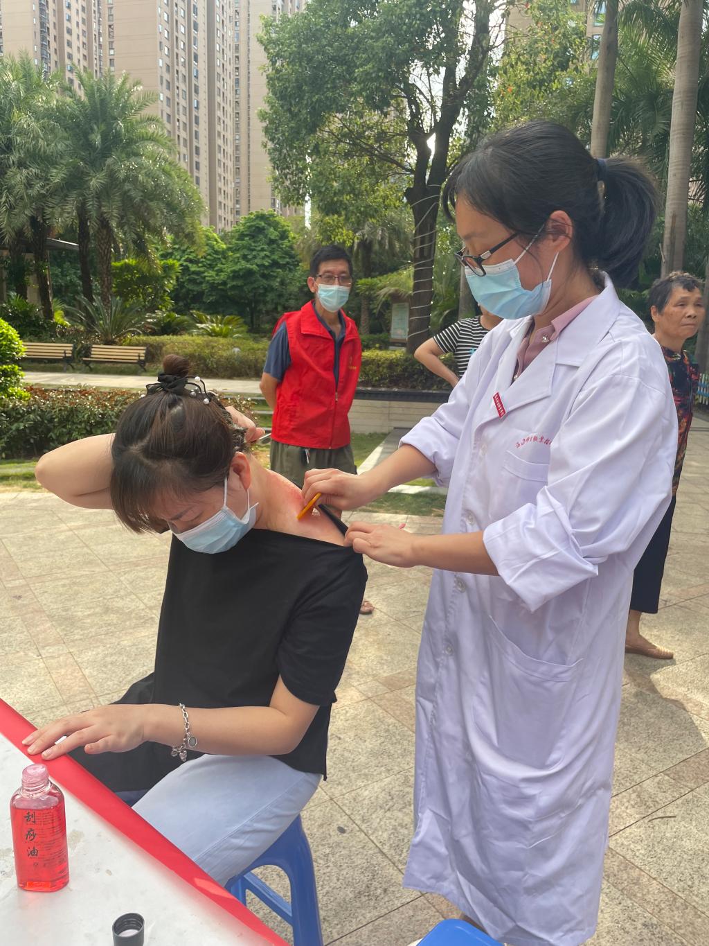 活動(dòng)中,三位老師對(duì)前來(lái)義診的居民們進(jìn)行認(rèn)真辨證施治,熟練運(yùn)用專(zhuān)業(yè)手法,針對(duì)性地為他們提供針刺、刮痧、拔罐、推拿等醫(yī)療保健服務(wù),并為其詳盡解答相關(guān)健康問(wèn)題,受到居民們的一致好評(píng),并表示希望今后能多開(kāi)展此類(lèi)義診活動(dòng)。