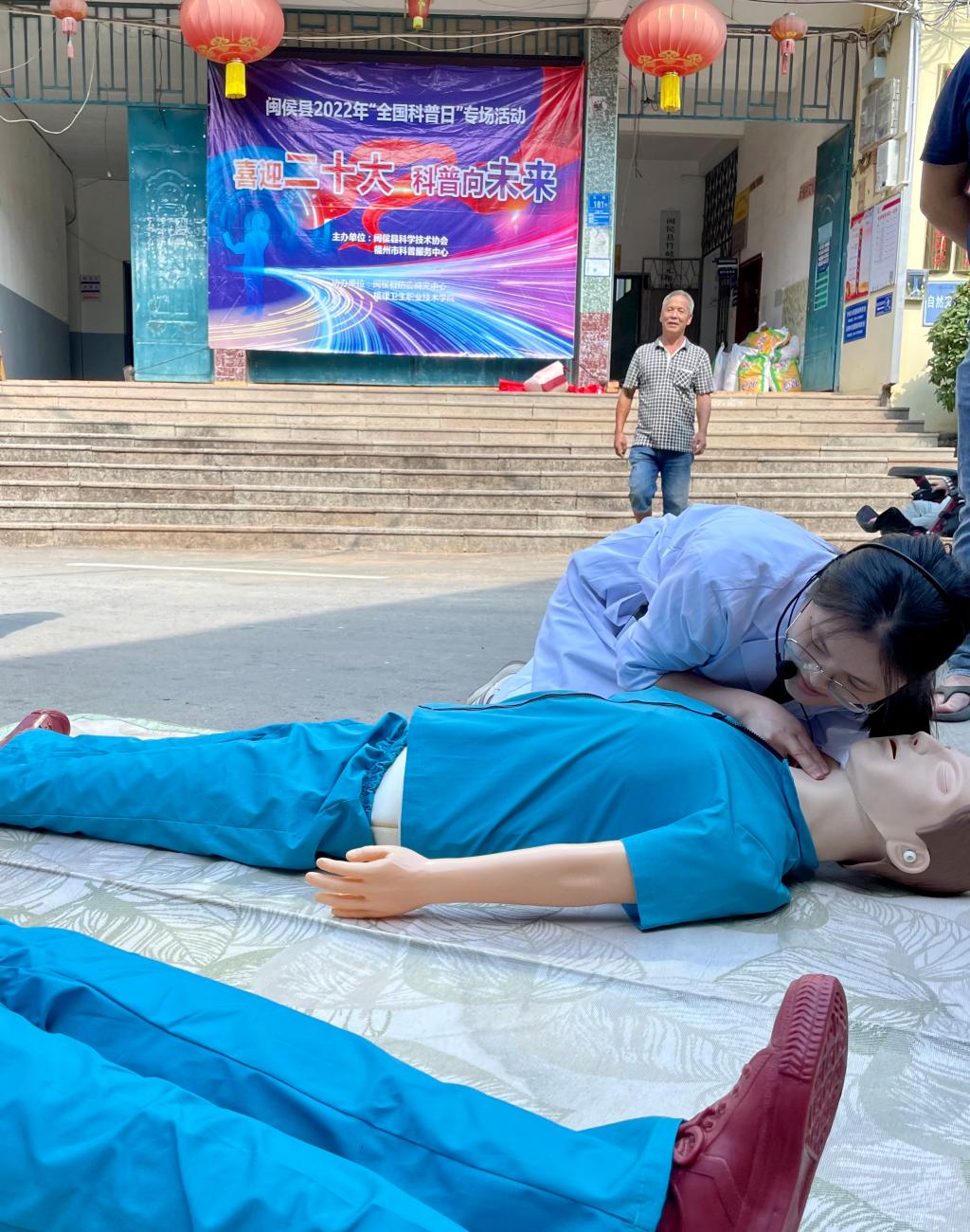 喜迎二十大,科普向未來。2022年9月24日上午,醫(yī)學(xué)院第一黨支部教師吳曉丹、第三黨支部教師葉汝萍,帶領(lǐng)學(xué)院部分學(xué)生,與閩侯縣科協(xié)、市科技館、縣防震減災(zāi)中心、閩侯青??萍夹≡?、縣老科協(xié)竹岐分會(huì)一行數(shù)人,來到閩侯縣竹岐鄉(xiāng)元格村共同開展包含心肺復(fù)蘇與高血壓健康教育、防震減災(zāi)知識(shí)、農(nóng)業(yè)知識(shí)宣傳等在內(nèi)的科普專場(chǎng)活動(dòng)。
