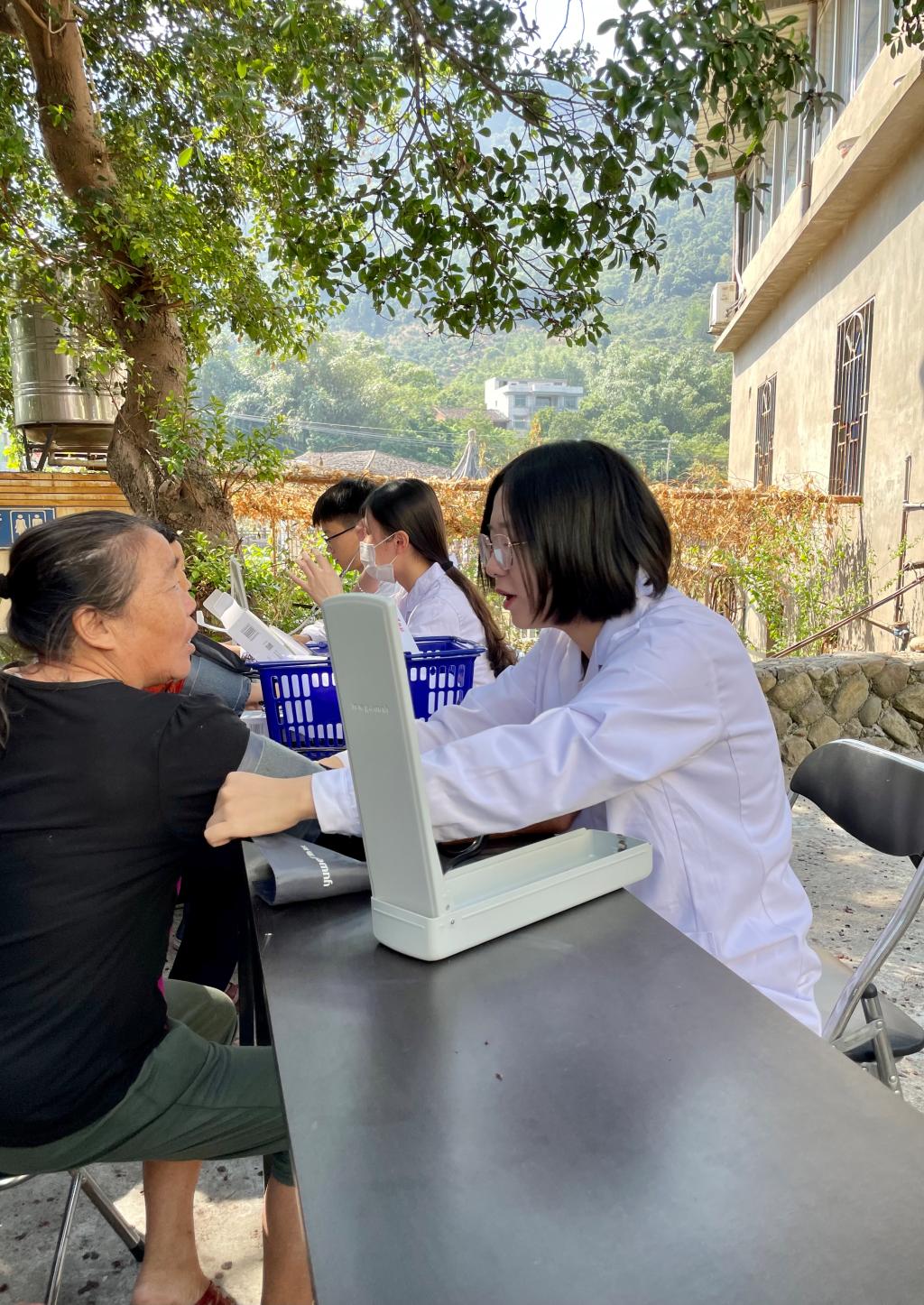 在活動(dòng)中,葉汝萍老師為村民們演示了心肺復(fù)蘇標(biāo)準(zhǔn)操作,并現(xiàn)場(chǎng)指導(dǎo)了感興趣的中青年村民體驗(yàn)練習(xí)。吳曉丹老師帶領(lǐng)同學(xué)給到場(chǎng)村民測(cè)量血壓,并講解高血壓防治的有關(guān)知識(shí)。讓老百姓充分認(rèn)識(shí)到高血壓的危害性,了解到在日常生活中如何預(yù)防、管理高血壓。參與活動(dòng)的部分學(xué)生還利用所學(xué)的中醫(yī)傳統(tǒng)推拿技術(shù)為有需求的村民緩解肩頸部的不適。在場(chǎng)的老百姓們紛紛表示此次科普活動(dòng)很有收獲、很有意義。