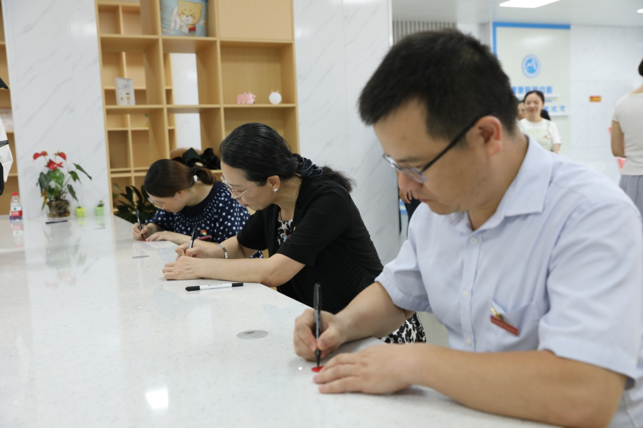 活動(dòng)中,大家莊重地在“初心”牌上寫下自己的名字,并將“初心”投入與自己黨齡相對(duì)應(yīng)的榮譽(yù)框中,以這種特殊的方式,讓全體黨員時(shí)刻牢記中國(guó)共產(chǎn)黨人的初心和使命,忠實(shí)踐行為師生服務(wù)的宗旨,切實(shí)發(fā)揮黨員的先鋒模范作用。